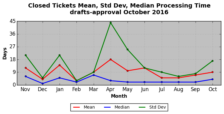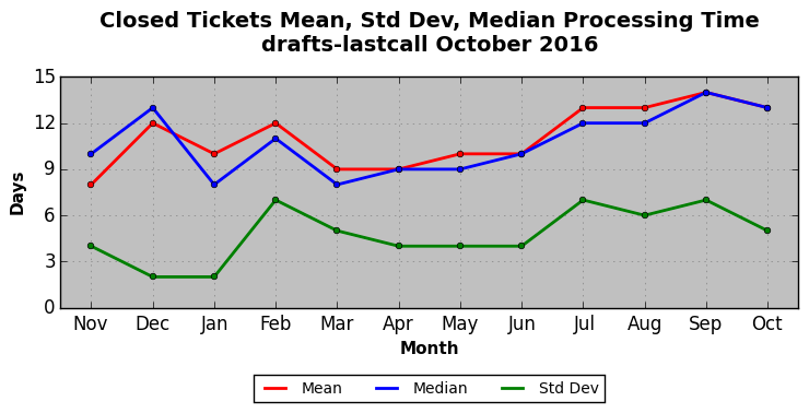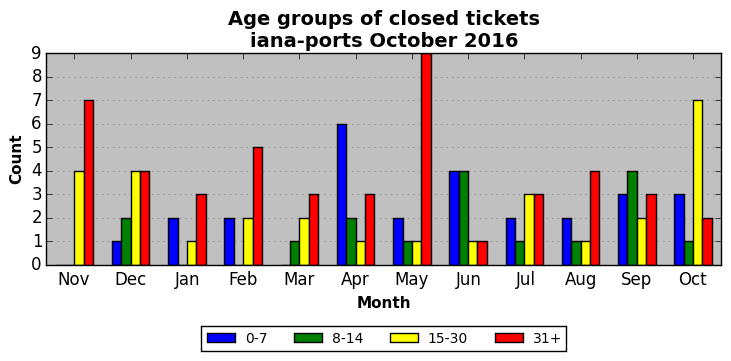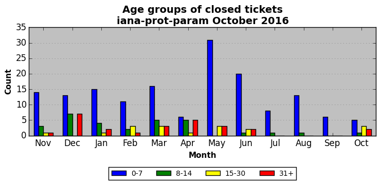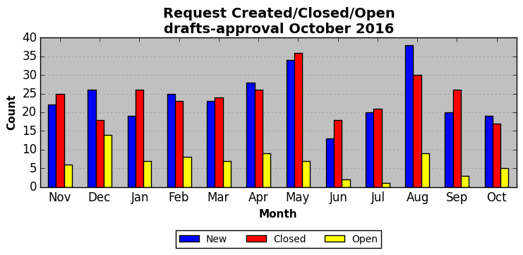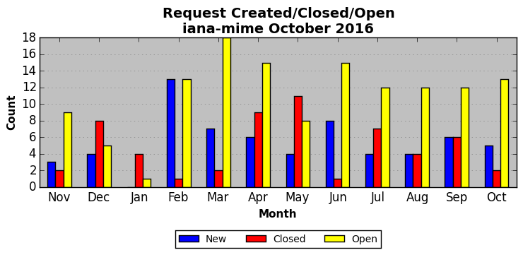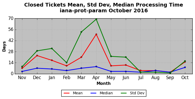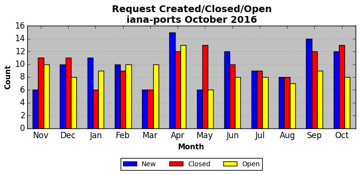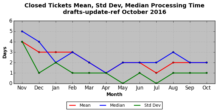 The statistics below are offered to measure IANA's fulfillment of the goals established in the ICANN / IANA - IETF MoU Supplemental Agreement. Further details on these goals and statistics can be found by reviewing the agreement.