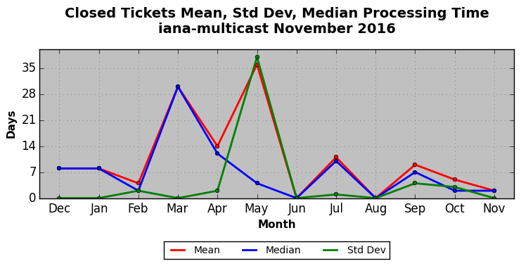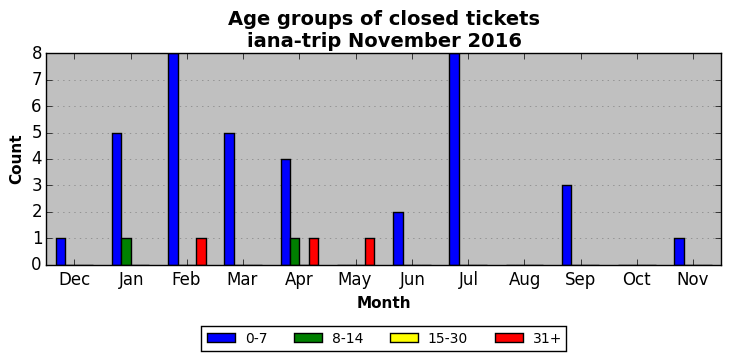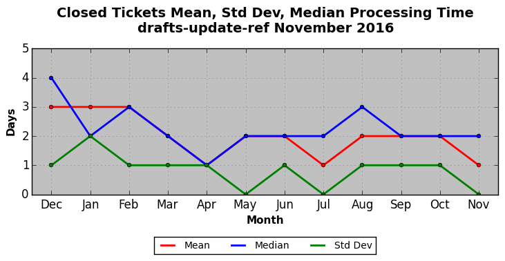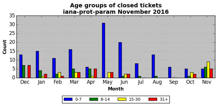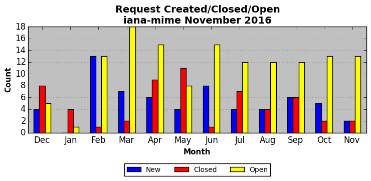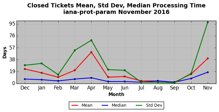 The statistics below are offered to measure IANA's fulfillment of the goals established in the ICANN / IANA - IETF MoU Supplemental Agreement. Further details on these goals and statistics can be found by reviewing the agreement.