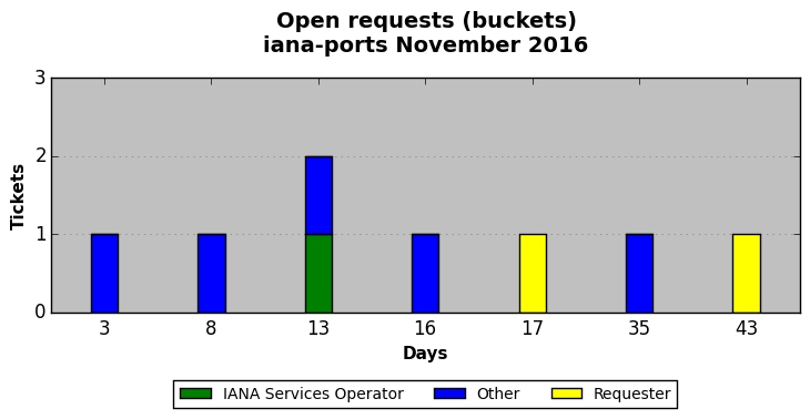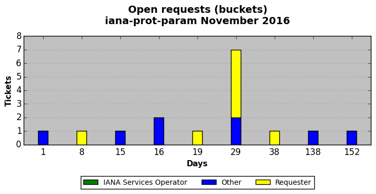 November 2016Due to the nature of resource request reviews, ICANN/IANA and the IETF community are jointly responsible for cooperatively managing the resource request process. ICANN/IANA has control over the functions it performs directly, e.g., receiving requests, making sure they are syntactically and semantically sensible, forwarding the requests to Designated Experts where appropriate, creating and modifying the registries, etc. The IETF community has direct or indirect control over functions performed by third parties, including IESG Designated Experts, the IESG, the IAB, the RFC Editor, and the requester. As such, the processing of requests has a “gross processing time” calendar days goal established for each function and a “net processing time” calendar days goal to reflect time expended directly by ICANN/IANA.