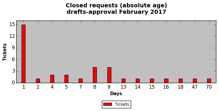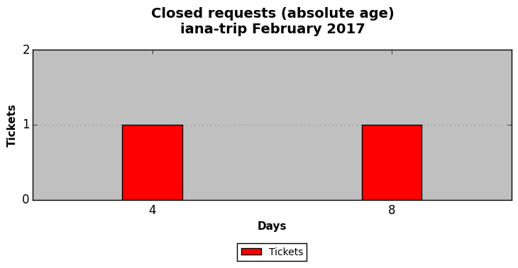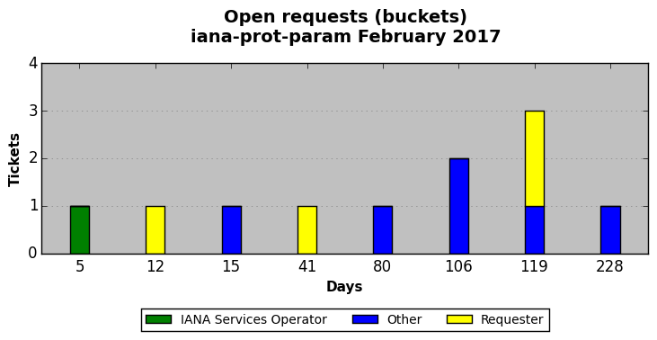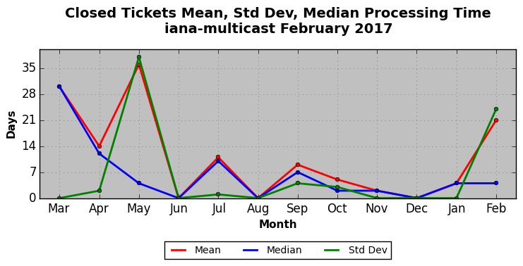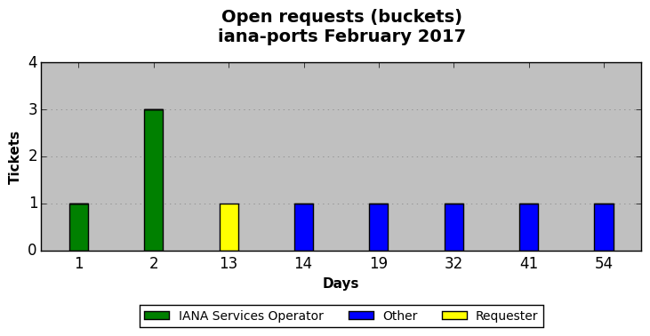 February 2017Due to the nature of resource request reviews, ICANN/IANA and the IETF community are jointly responsible for cooperatively managing the resource request process. ICANN/IANA has control over the functions it performs directly, e.g., receiving requests, making sure they are syntactically and semantically sensible, forwarding the requests to Designated Experts where appropriate, creating and modifying the registries, etc. The IETF community has direct or indirect control over functions performed by third parties, including IESG Designated Experts, the IESG, the IAB, the RFC Editor, and the requester. As such, the processing of requests has a “gross processing time” calendar days goal established for each function and a “net processing time” calendar days goal to reflect time expended directly by ICANN/IANA.