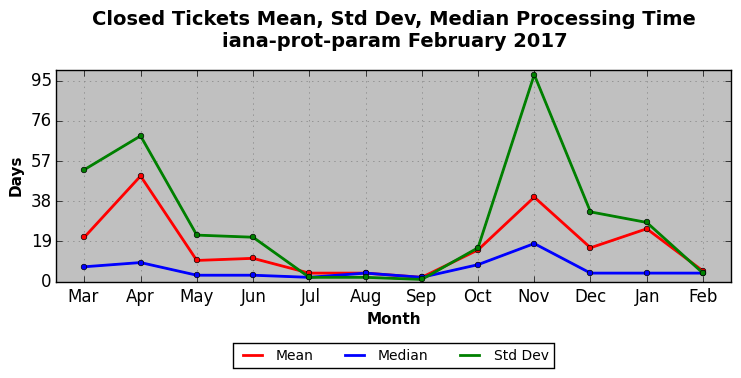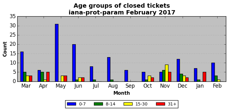 The statistics below are offered to measure IANA's fulfillment of the goals established in the ICANN / IANA - IETF MoU Supplemental Agreement. Further details on these goals and statistics can be found by reviewing the agreement.