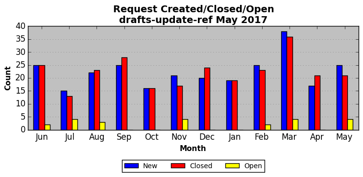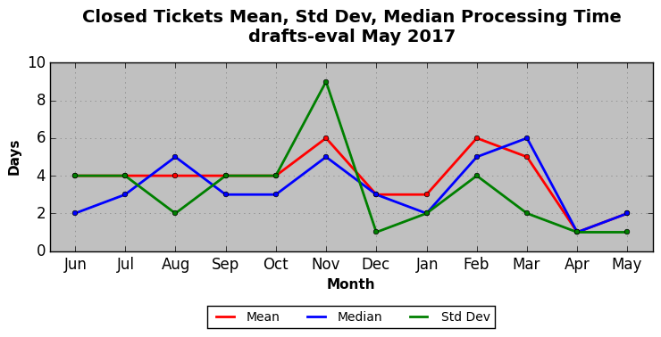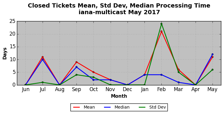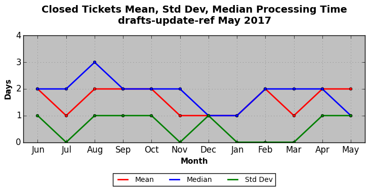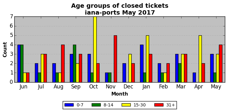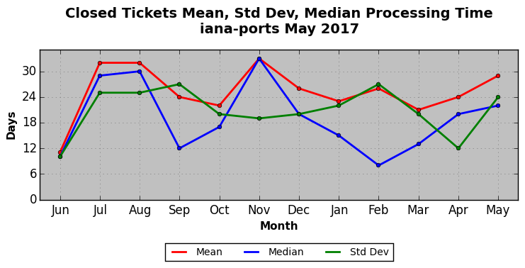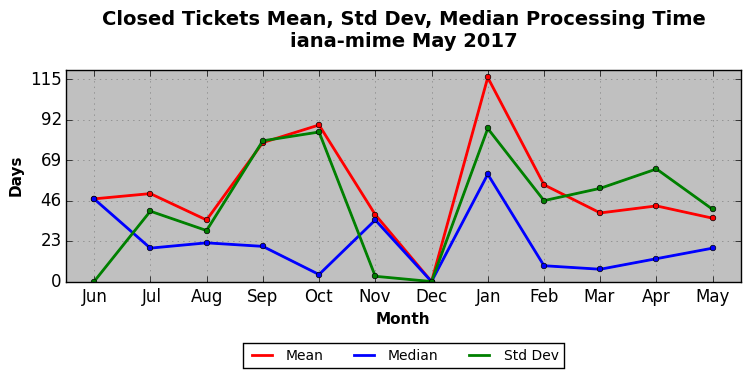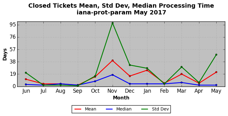 The statistics below are offered to measure IANA's fulfillment of the goals established in the ICANN / IANA - IETF MoU Supplemental Agreement. Further details on these goals and statistics can be found by reviewing the agreement.