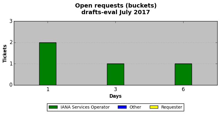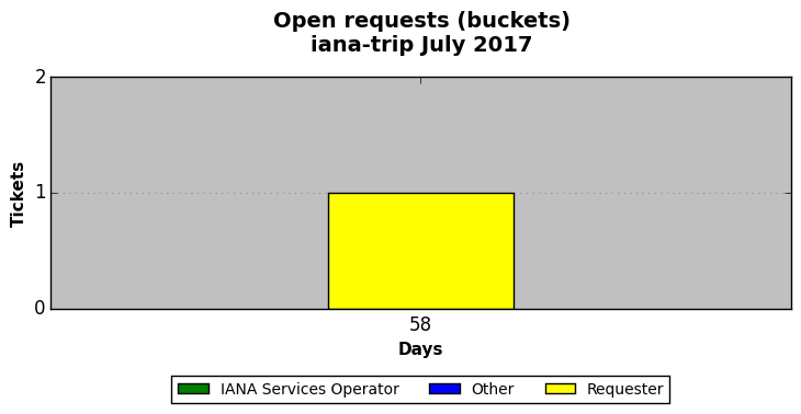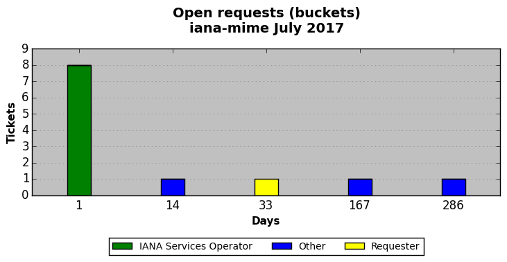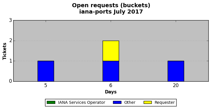 July 2017Due to the nature of resource request reviews, ICANN/IANA and the IETF community are jointly responsible for cooperatively managing the resource request process. ICANN/IANA has control over the functions it performs directly, e.g., receiving requests, making sure they are syntactically and semantically sensible, forwarding the requests to Designated Experts where appropriate, creating and modifying the registries, etc. The IETF community has direct or indirect control over functions performed by third parties, including IESG Designated Experts, the IESG, the IAB, the RFC Editor, and the requester. As such, the processing of requests has a “gross processing time” calendar days goal established for each function and a “net processing time” calendar days goal to reflect time expended directly by ICANN/IANA.