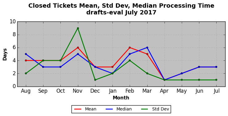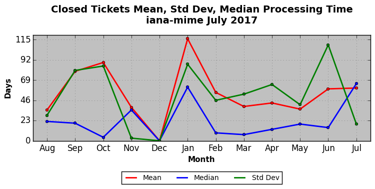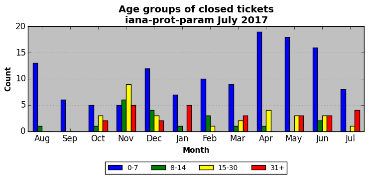 The statistics below are offered to measure IANA's fulfillment of the goals established in the ICANN / IANA - IETF MoU Supplemental Agreement. Further details on these goals and statistics can be found by reviewing the agreement.