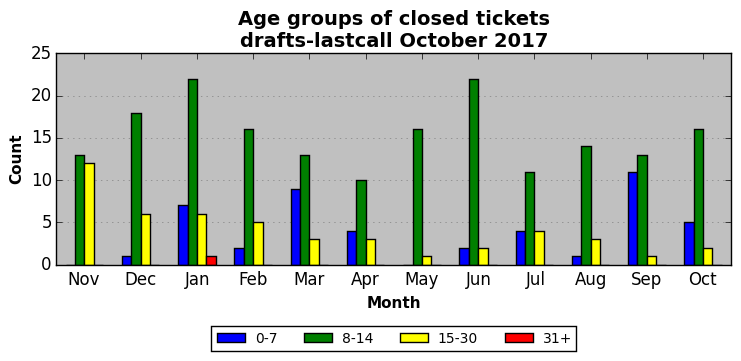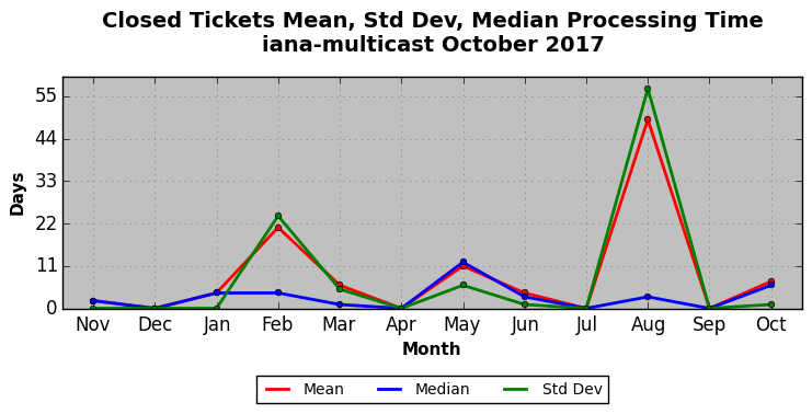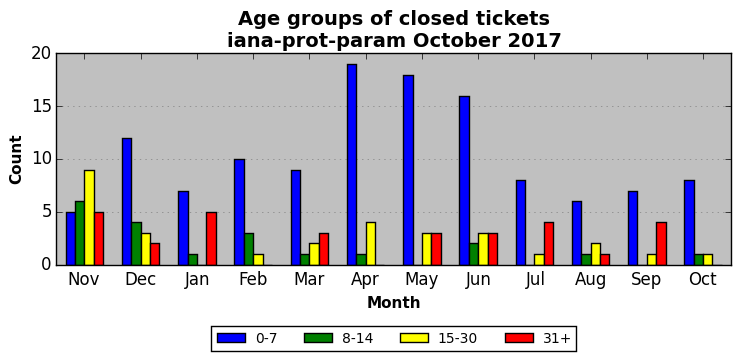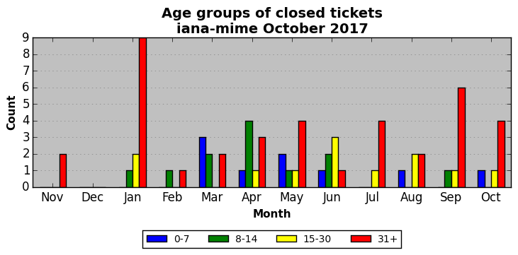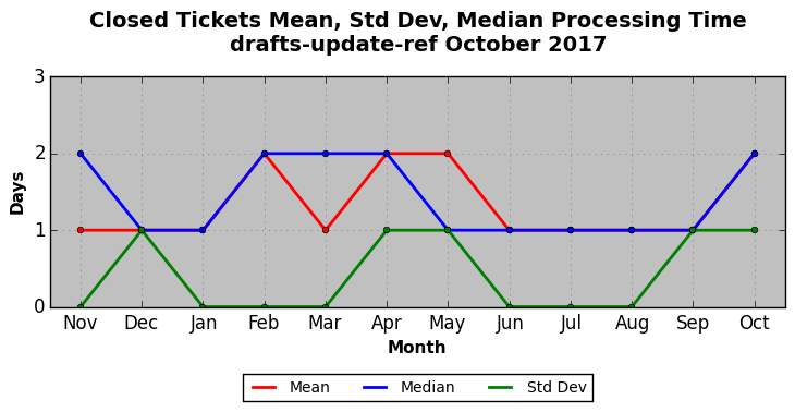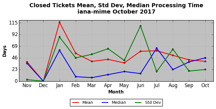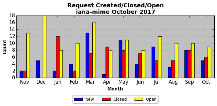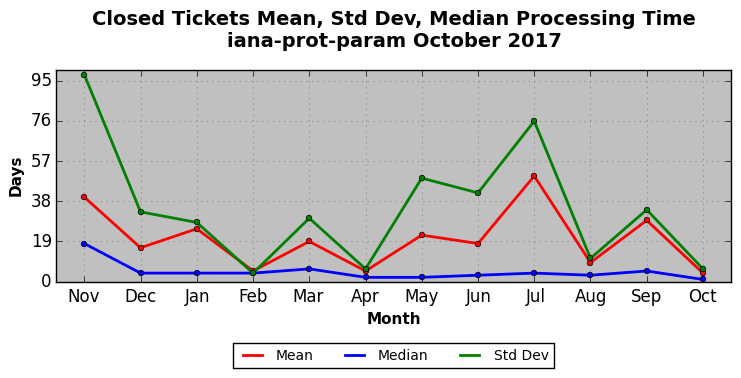 The statistics below are offered to measure IANA's fulfillment of the goals established in the ICANN / IANA - IETF MoU Supplemental Agreement. Further details on these goals and statistics can be found by reviewing the agreement.