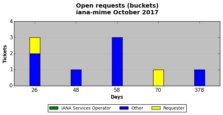 October 2017Due to the nature of resource request reviews, ICANN/IANA and the IETF community are jointly responsible for cooperatively managing the resource request process. ICANN/IANA has control over the functions it performs directly, e.g., receiving requests, making sure they are syntactically and semantically sensible, forwarding the requests to Designated Experts where appropriate, creating and modifying the registries, etc. The IETF community has direct or indirect control over functions performed by third parties, including IESG Designated Experts, the IESG, the IAB, the RFC Editor, and the requester. As such, the processing of requests has a “gross processing time” calendar days goal established for each function and a “net processing time” calendar days goal to reflect time expended directly by ICANN/IANA.