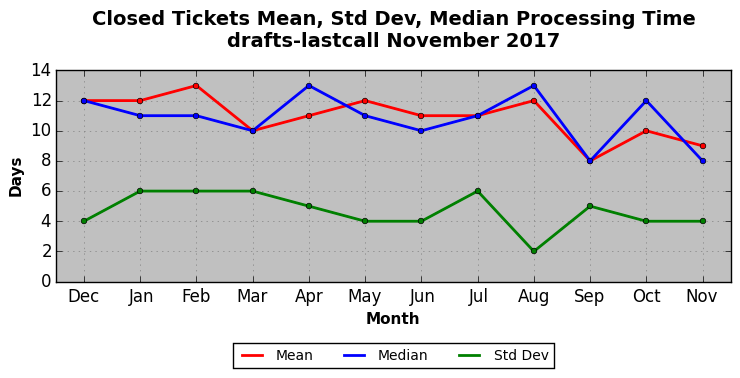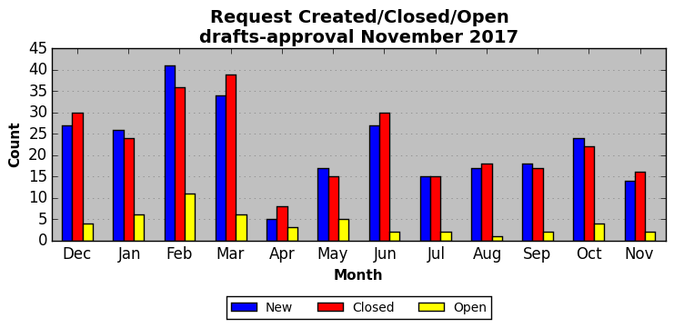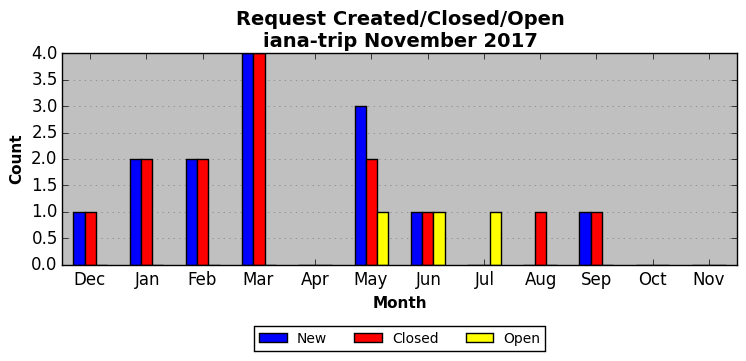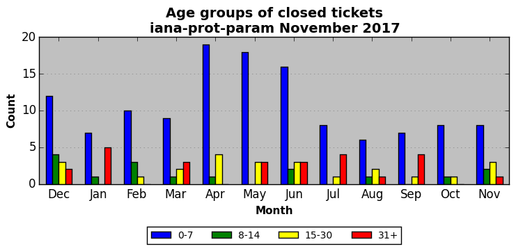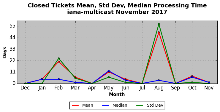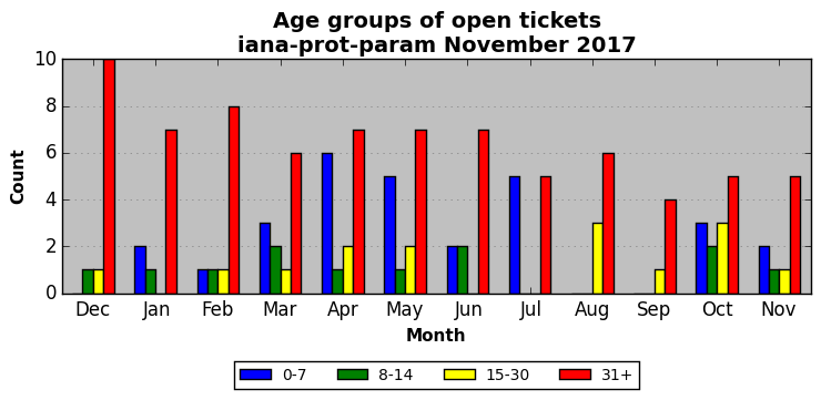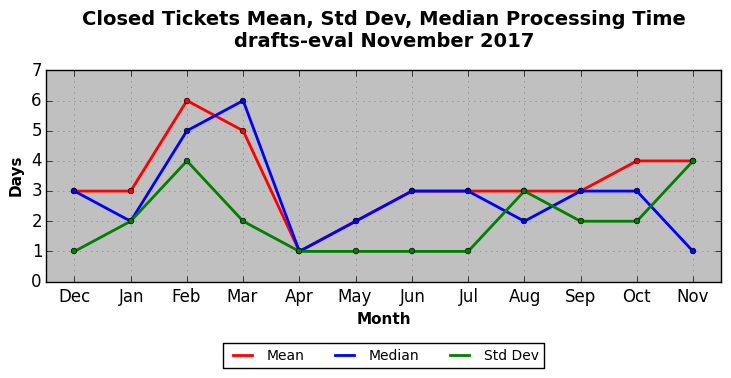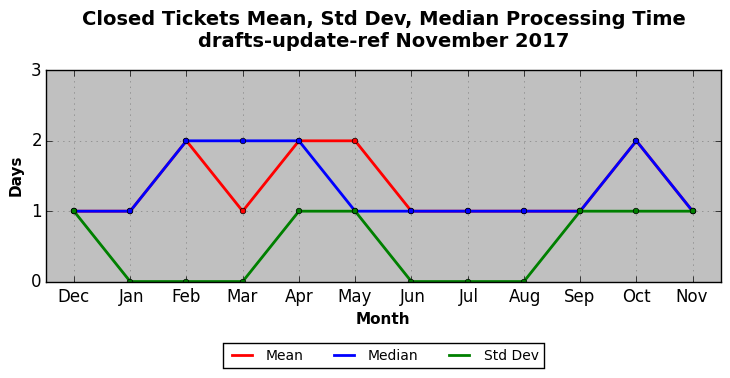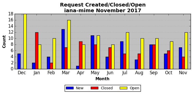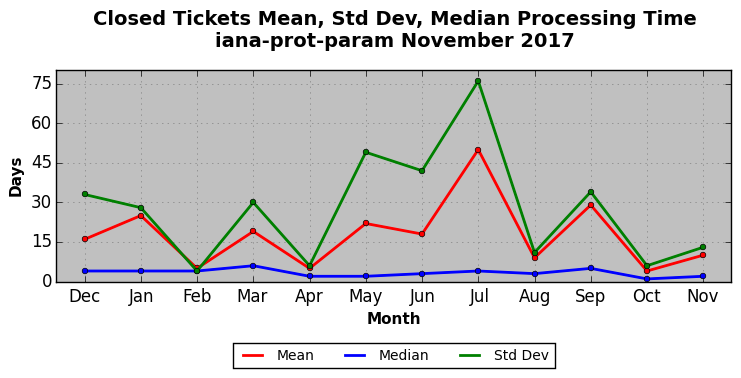 The statistics below are offered to measure IANA's fulfillment of the goals established in the ICANN / IANA - IETF MoU Supplemental Agreement. Further details on these goals and statistics can be found by reviewing the agreement.