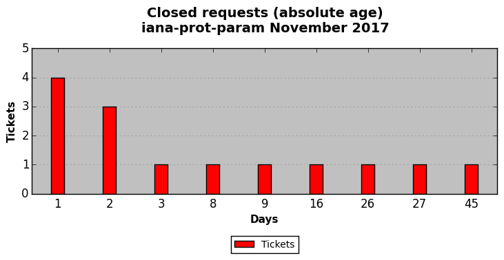 November 2017Due to the nature of resource request reviews, ICANN/IANA and the IETF community are jointly responsible for cooperatively managing the resource request process. ICANN/IANA has control over the functions it performs directly, e.g., receiving requests, making sure they are syntactically and semantically sensible, forwarding the requests to Designated Experts where appropriate, creating and modifying the registries, etc. The IETF community has direct or indirect control over functions performed by third parties, including IESG Designated Experts, the IESG, the IAB, the RFC Editor, and the requester. As such, the processing of requests has a “gross processing time” calendar days goal established for each function and a “net processing time” calendar days goal to reflect time expended directly by ICANN/IANA.