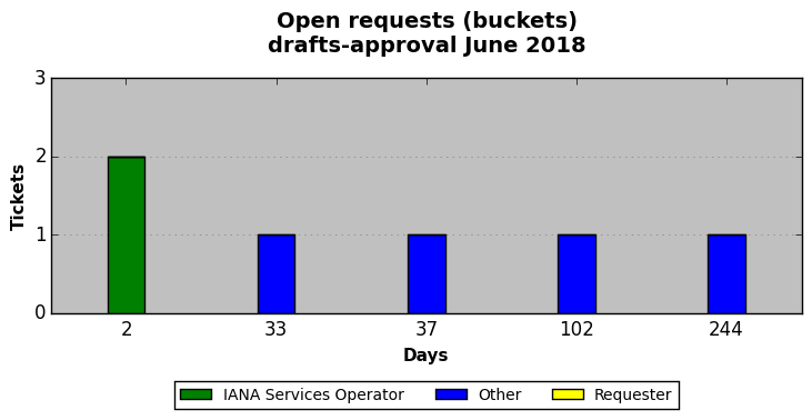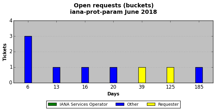 June 2018Due to the nature of resource request reviews, ICANN/IANA and the IETF community are jointly responsible for cooperatively managing the resource request process. ICANN/IANA has control over the functions it performs directly, e.g., receiving requests, making sure they are syntactically and semantically sensible, forwarding the requests to Designated Experts where appropriate, creating and modifying the registries, etc. The IETF community has direct or indirect control over functions performed by third parties, including IESG Designated Experts, the IESG, the IAB, the RFC Editor, and the requester. As such, the processing of requests has a “gross processing time” calendar days goal established for each function and a “net processing time” calendar days goal to reflect time expended directly by ICANN/IANA.