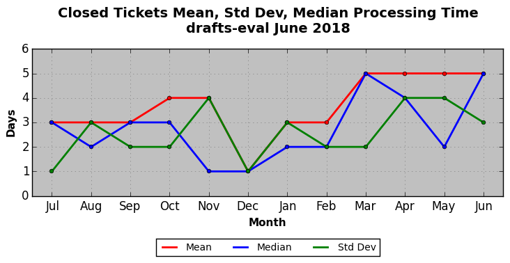 The statistics below are offered to measure IANA's fulfillment of the goals established in the ICANN / IANA - IETF MoU Supplemental Agreement. Further details on these goals and statistics can be found by reviewing the agreement.