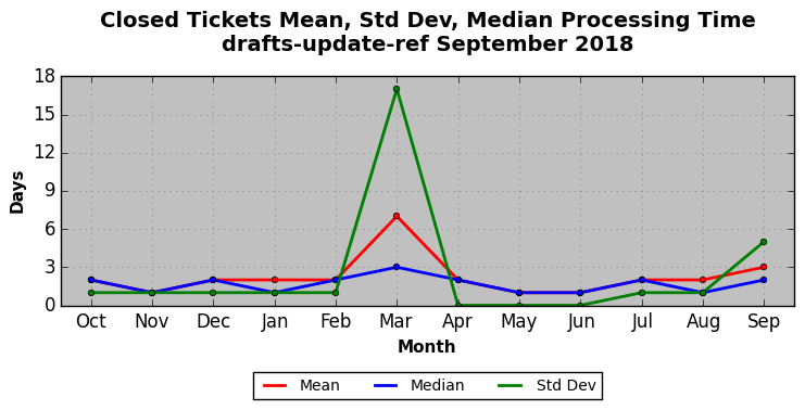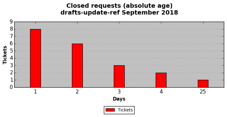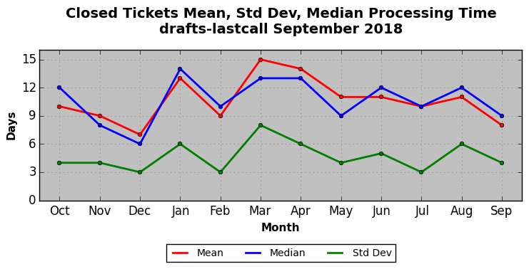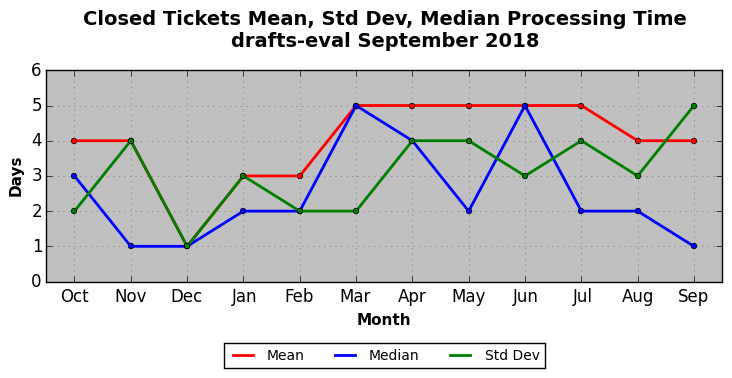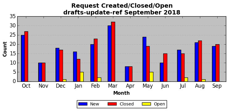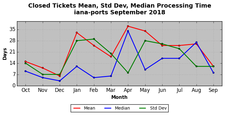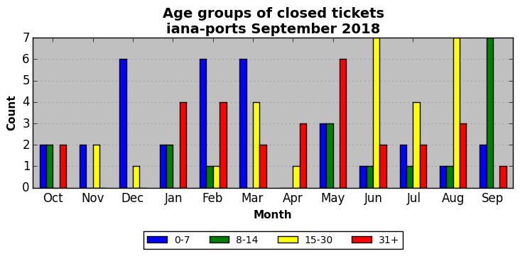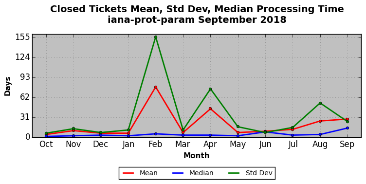 The statistics below are offered to measure IANA's fulfillment of the goals established in the ICANN / IANA - IETF MoU Supplemental Agreement. Further details on these goals and statistics can be found by reviewing the agreement.