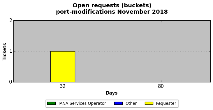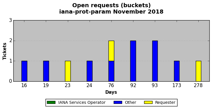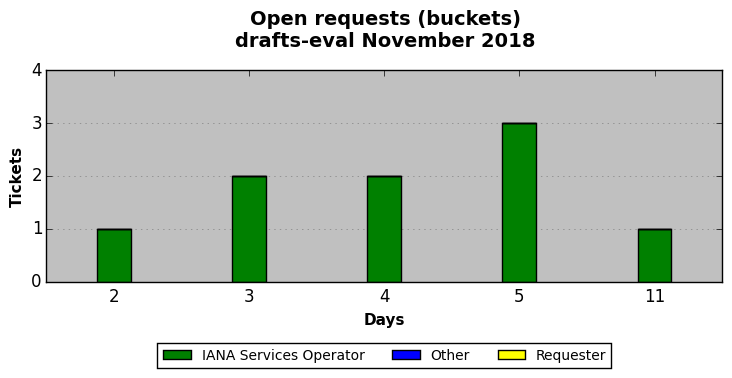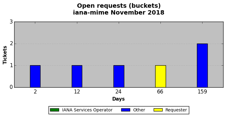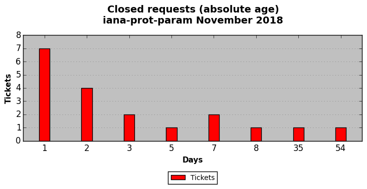 November 2018Due to the nature of resource request reviews, ICANN/IANA and the IETF community are jointly responsible for cooperatively managing the resource request process. ICANN/IANA has control over the functions it performs directly, e.g., receiving requests, making sure they are syntactically and semantically sensible, forwarding the requests to Designated Experts where appropriate, creating and modifying the registries, etc. The IETF community has direct or indirect control over functions performed by third parties, including IESG Designated Experts, the IESG, the IAB, the RFC Editor, and the requester. As such, the processing of requests has a “gross processing time” calendar days goal established for each function and a “net processing time” calendar days goal to reflect time expended directly by ICANN/IANA.