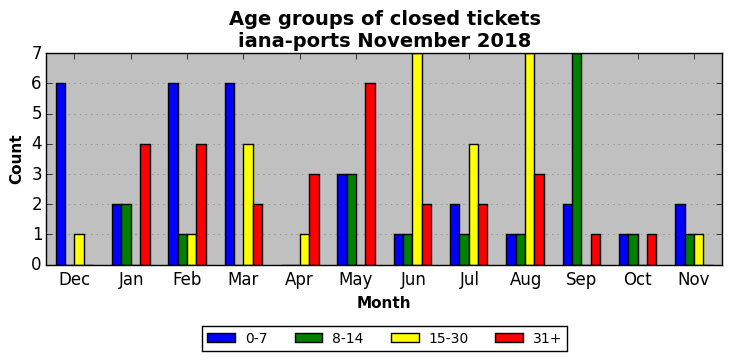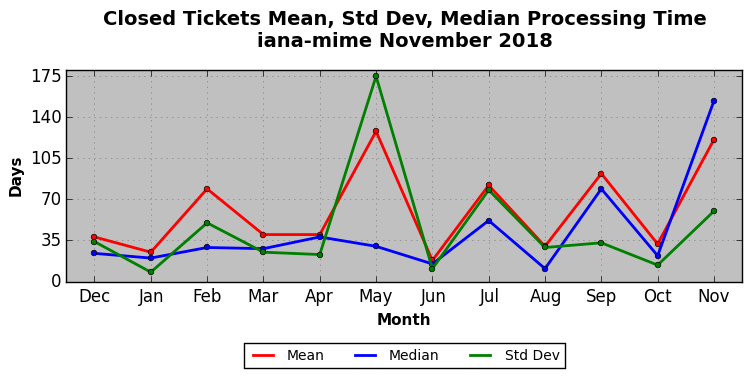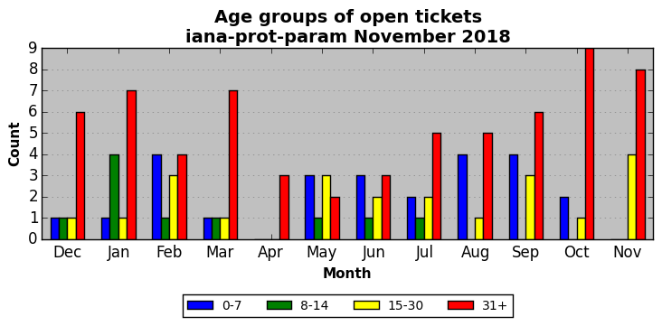 The statistics below are offered to measure IANA's fulfillment of the goals established in the ICANN / IANA - IETF MoU Supplemental Agreement. Further details on these goals and statistics can be found by reviewing the agreement.