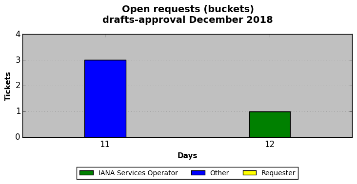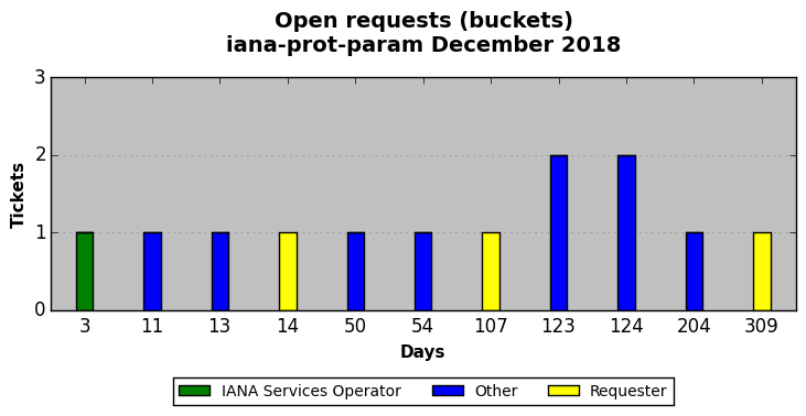 December 2018Due to the nature of resource request reviews, ICANN/IANA and the IETF community are jointly responsible for cooperatively managing the resource request process. ICANN/IANA has control over the functions it performs directly, e.g., receiving requests, making sure they are syntactically and semantically sensible, forwarding the requests to Designated Experts where appropriate, creating and modifying the registries, etc. The IETF community has direct or indirect control over functions performed by third parties, including IESG Designated Experts, the IESG, the IAB, the RFC Editor, and the requester. As such, the processing of requests has a “gross processing time” calendar days goal established for each function and a “net processing time” calendar days goal to reflect time expended directly by ICANN/IANA.