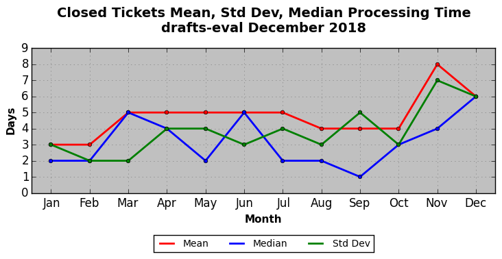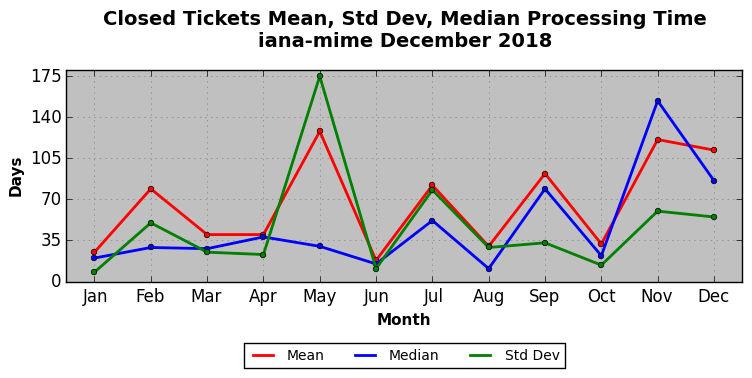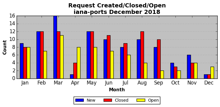 The statistics below are offered to measure IANA's fulfillment of the goals established in the ICANN / IANA - IETF MoU Supplemental Agreement. Further details on these goals and statistics can be found by reviewing the agreement.