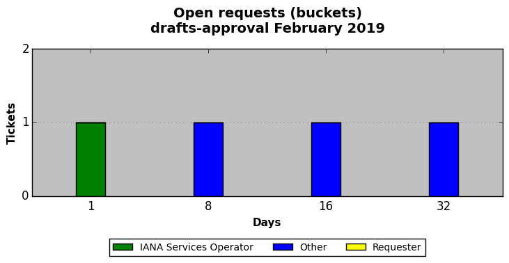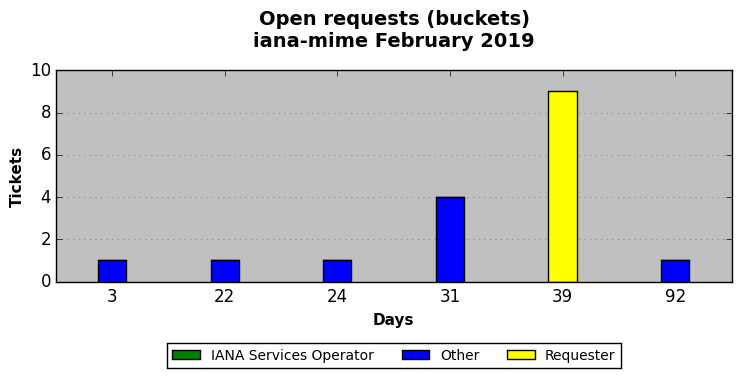 February 2019Due to the nature of resource request reviews, ICANN/IANA and the IETF community are jointly responsible for cooperatively managing the resource request process. ICANN/IANA has control over the functions it performs directly, e.g., receiving requests, making sure they are syntactically and semantically sensible, forwarding the requests to Designated Experts where appropriate, creating and modifying the registries, etc. The IETF community has direct or indirect control over functions performed by third parties, including IESG Designated Experts, the IESG, the IAB, the RFC Editor, and the requester. As such, the processing of requests has a “gross processing time” calendar days goal established for each function and a “net processing time” calendar days goal to reflect time expended directly by ICANN/IANA.