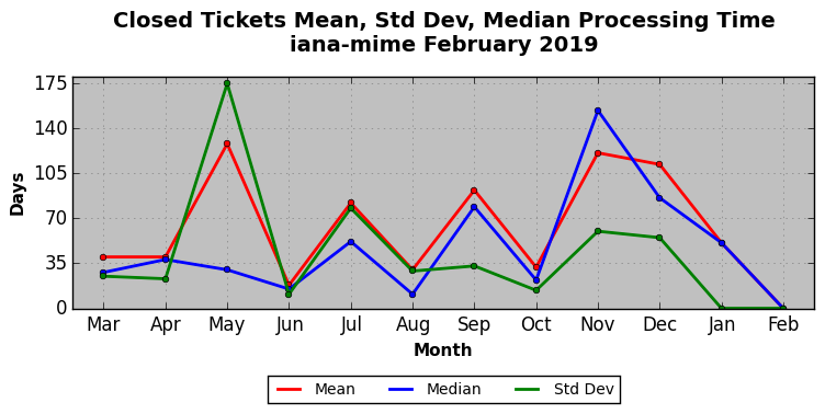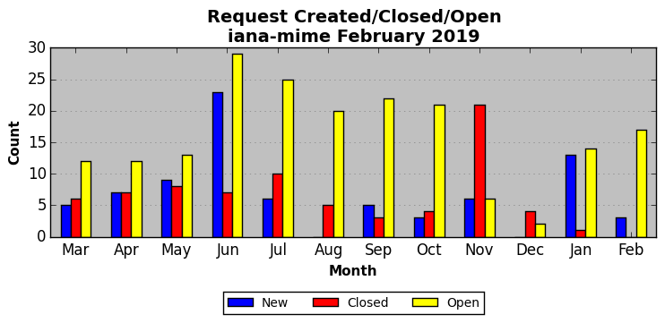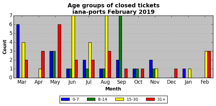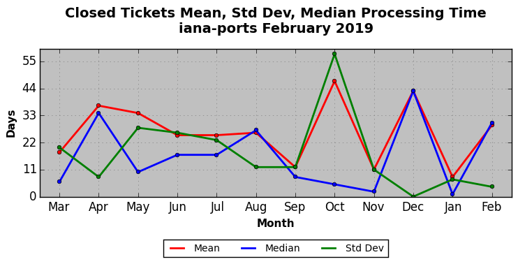 The statistics below are offered to measure IANA's fulfillment of the goals established in the ICANN / IANA - IETF MoU Supplemental Agreement. Further details on these goals and statistics can be found by reviewing the agreement.