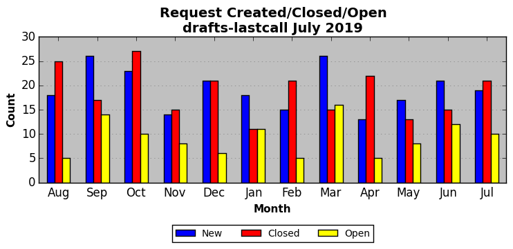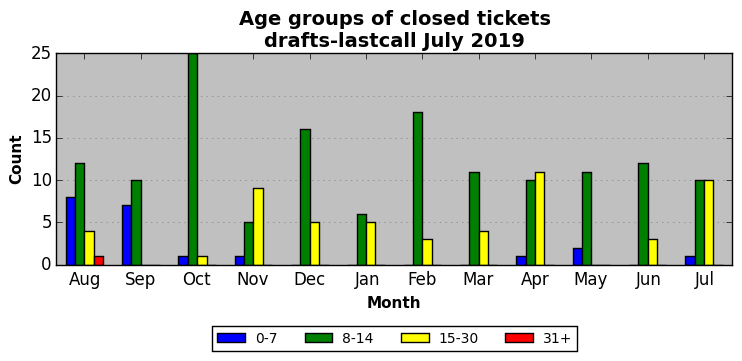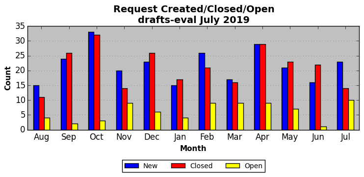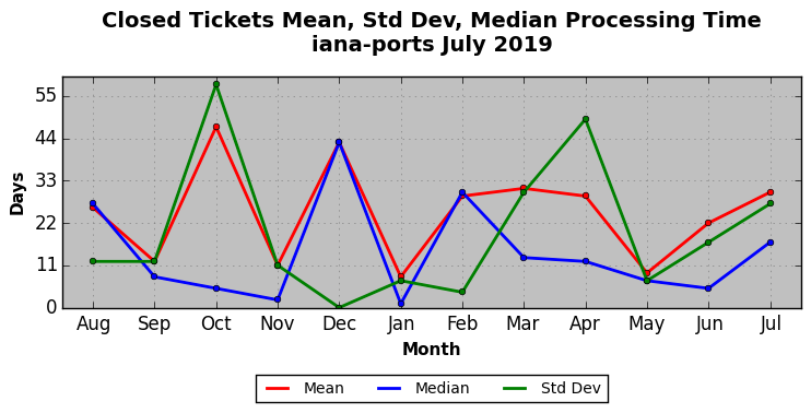 The statistics below are offered to measure IANA's fulfillment of the goals established in the ICANN / IANA - IETF MoU Supplemental Agreement. Further details on these goals and statistics can be found by reviewing the agreement.