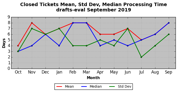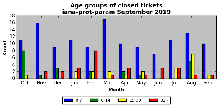 The statistics below are offered to measure IANA's fulfillment of the goals established in the ICANN / IANA - IETF MoU Supplemental Agreement. Further details on these goals and statistics can be found by reviewing the agreement.