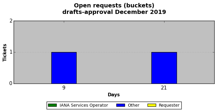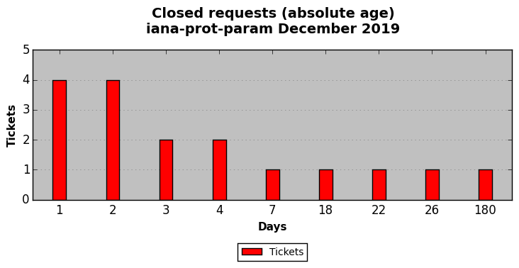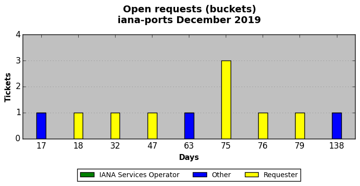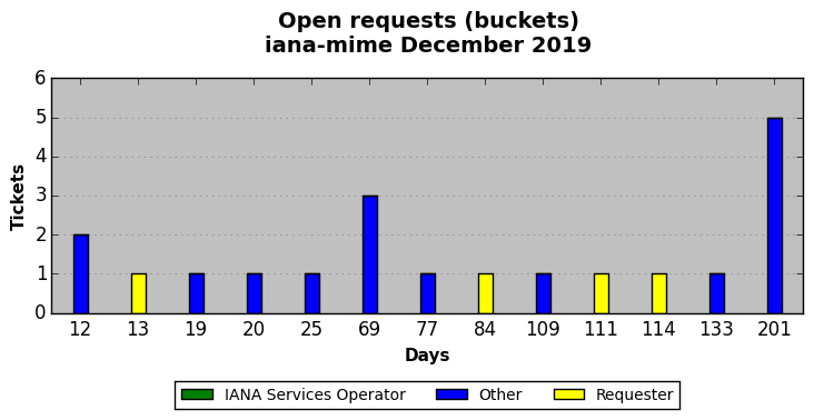 December 2019Due to the nature of resource request reviews, ICANN/IANA and the IETF community are jointly responsible for cooperatively managing the resource request process. ICANN/IANA has control over the functions it performs directly, e.g., receiving requests, making sure they are syntactically and semantically sensible, forwarding the requests to Designated Experts where appropriate, creating and modifying the registries, etc. The IETF community has direct or indirect control over functions performed by third parties, including IESG Designated Experts, the IESG, the IAB, the RFC Editor, and the requester. As such, the processing of requests has a “gross processing time” calendar days goal established for each function and a “net processing time” calendar days goal to reflect time expended directly by ICANN/IANA.
