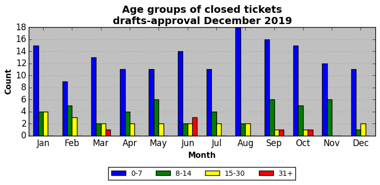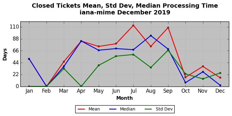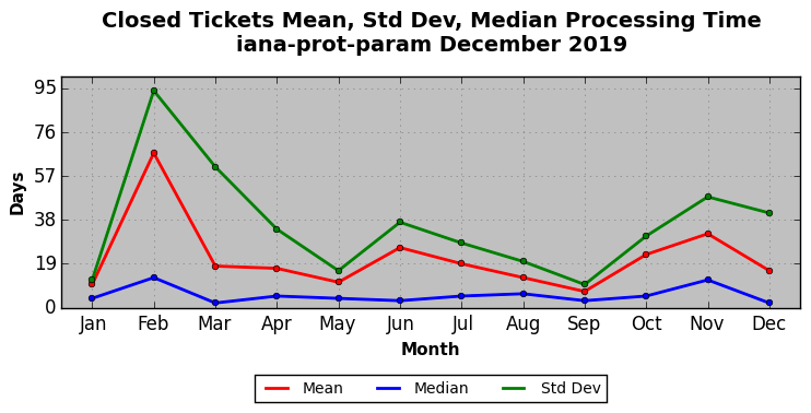 The statistics below are offered to measure IANA's fulfillment of the goals established in the ICANN / IANA - IETF MoU Supplemental Agreement. Further details on these goals and statistics can be found by reviewing the agreement.