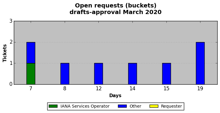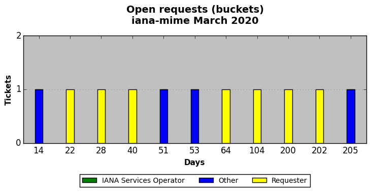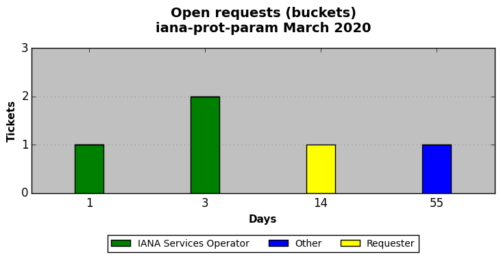 March 2020Due to the nature of resource request reviews, ICANN/IANA and the IETF community are jointly responsible for cooperatively managing the resource request process. ICANN/IANA has control over the functions it performs directly, e.g., receiving requests, making sure they are syntactically and semantically sensible, forwarding the requests to Designated Experts where appropriate, creating and modifying the registries, etc. The IETF community has direct or indirect control over functions performed by third parties, including IESG Designated Experts, the IESG, the IAB, the RFC Editor, and the requester. As such, the processing of requests has a “gross processing time” calendar days goal established for each function and a “net processing time” calendar days goal to reflect time expended directly by ICANN/IANA.