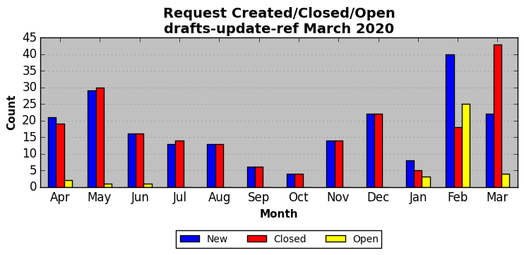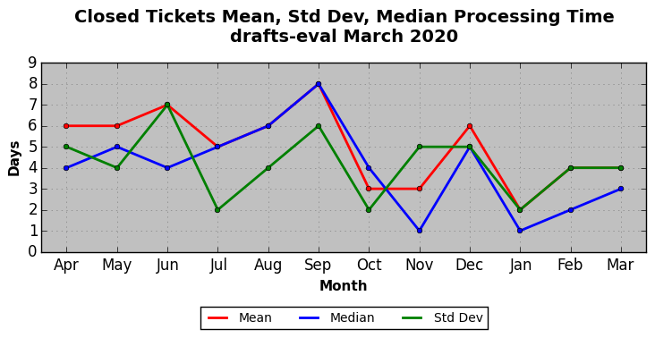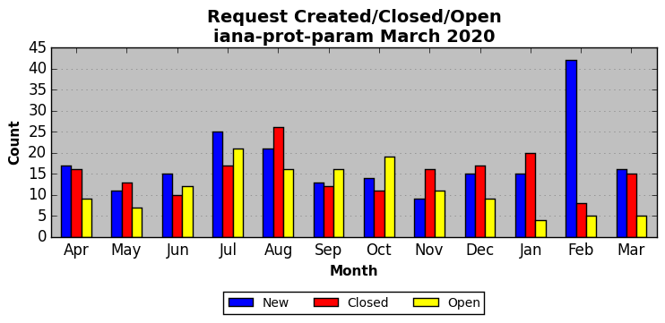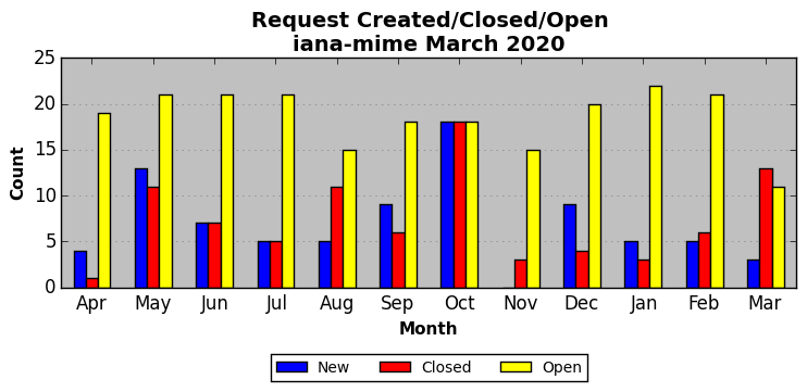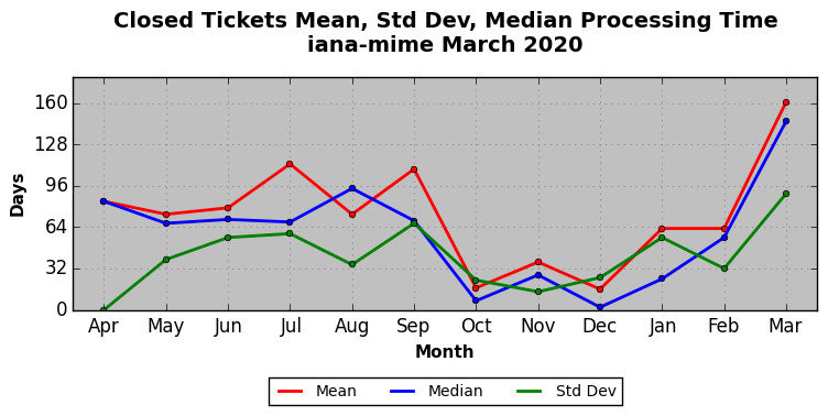 The statistics below are offered to measure IANA's fulfillment of the goals established in the ICANN / IANA - IETF MoU Supplemental Agreement. Further details on these goals and statistics can be found by reviewing the agreement.