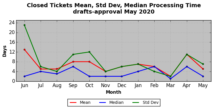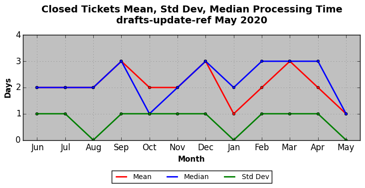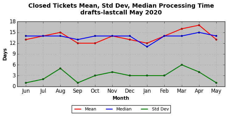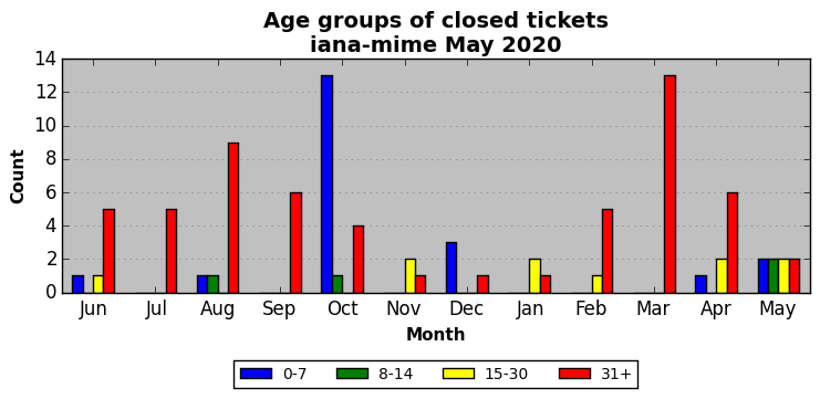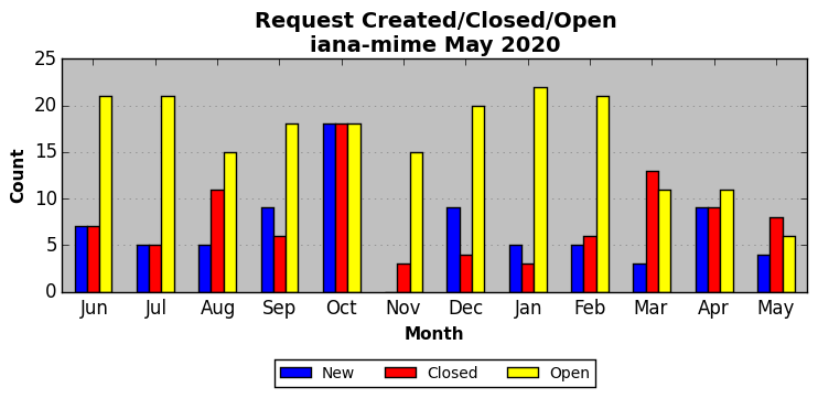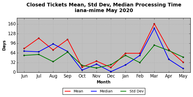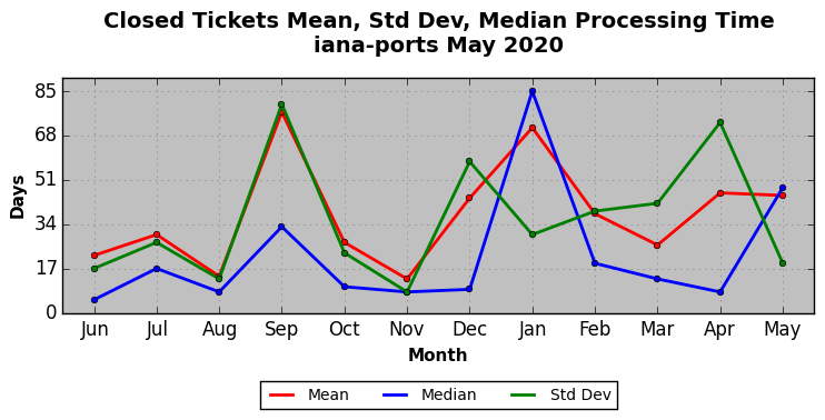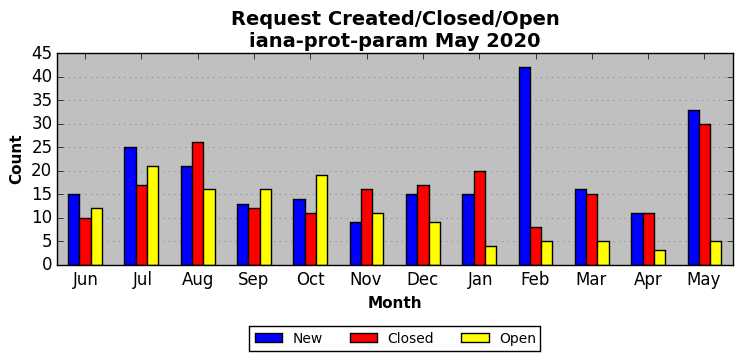 The statistics below are offered to measure IANA's fulfillment of the goals established in the ICANN / IANA - IETF MoU Supplemental Agreement. Further details on these goals and statistics can be found by reviewing the agreement.