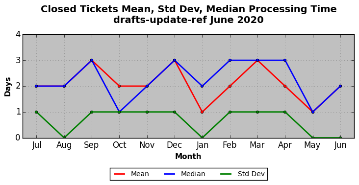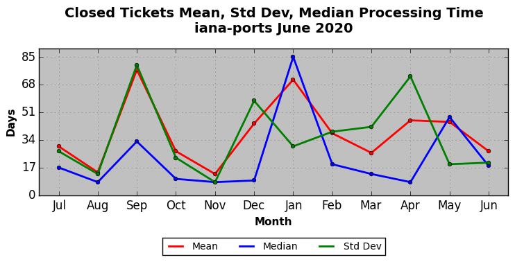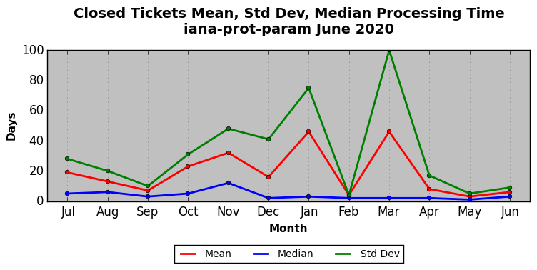The statistics below are offered to measure IANA's fulfillment of the goals established in the ICANN / IANA - IETF MoU Supplemental Agreement. Further details on these goals and statistics can be found by reviewing the agreement.