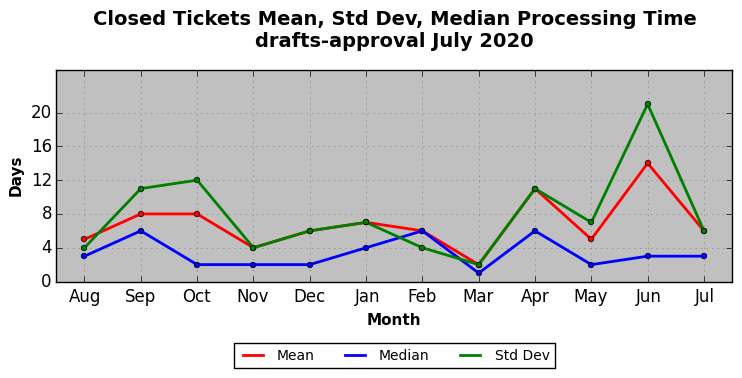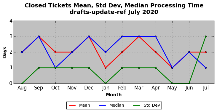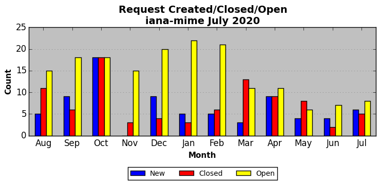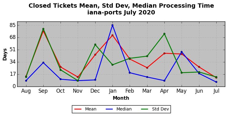 The statistics below are offered to measure IANA's fulfillment of the goals established in the ICANN / IANA - IETF MoU Supplemental Agreement. Further details on these goals and statistics can be found by reviewing the agreement.