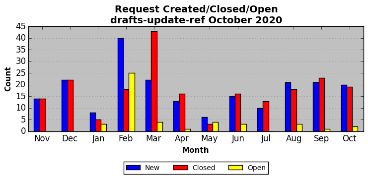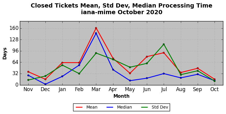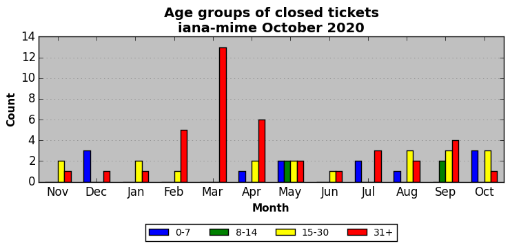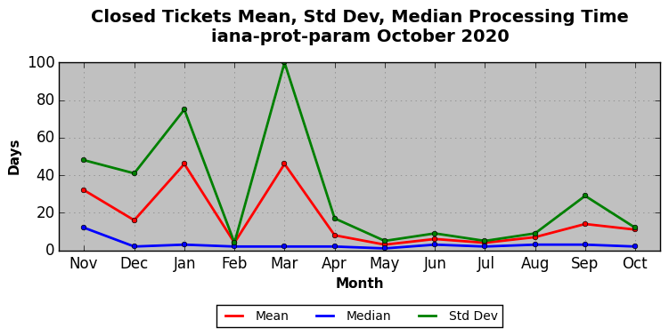 The statistics below are offered to measure IANA's fulfillment of the goals established in the ICANN / IANA - IETF MoU Supplemental Agreement. Further details on these goals and statistics can be found by reviewing the agreement.