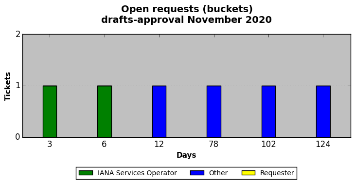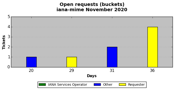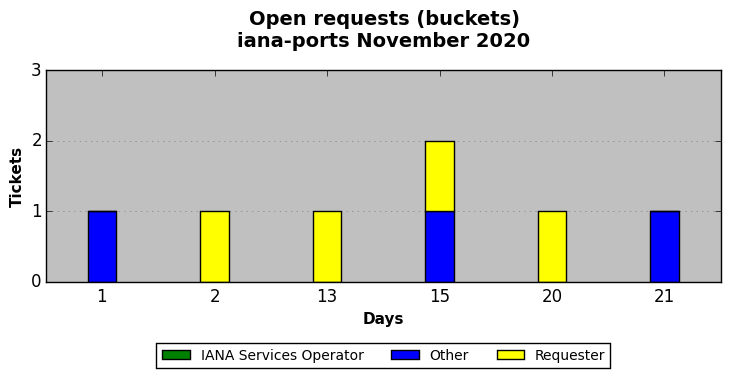 November 2020Due to the nature of resource request reviews, ICANN/IANA and the IETF community are jointly responsible for cooperatively managing the resource request process. ICANN/IANA has control over the functions it performs directly, e.g., receiving requests, making sure they are syntactically and semantically sensible, forwarding the requests to Designated Experts where appropriate, creating and modifying the registries, etc. The IETF community has direct or indirect control over functions performed by third parties, including IESG Designated Experts, the IESG, the IAB, the RFC Editor, and the requester. As such, the processing of requests has a “gross processing time” calendar days goal established for each function and a “net processing time” calendar days goal to reflect time expended directly by ICANN/IANA.