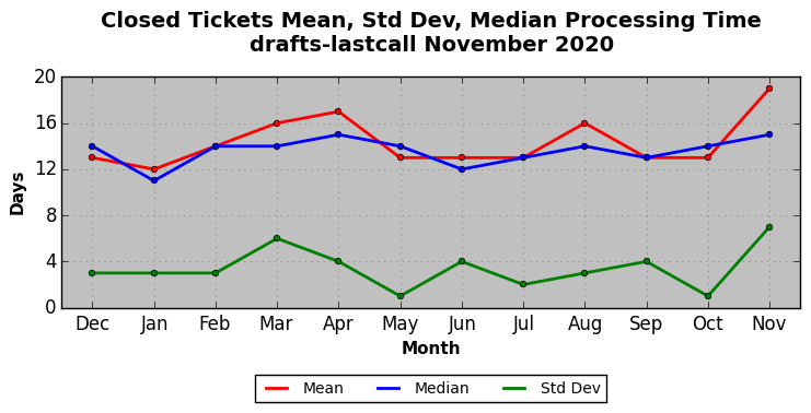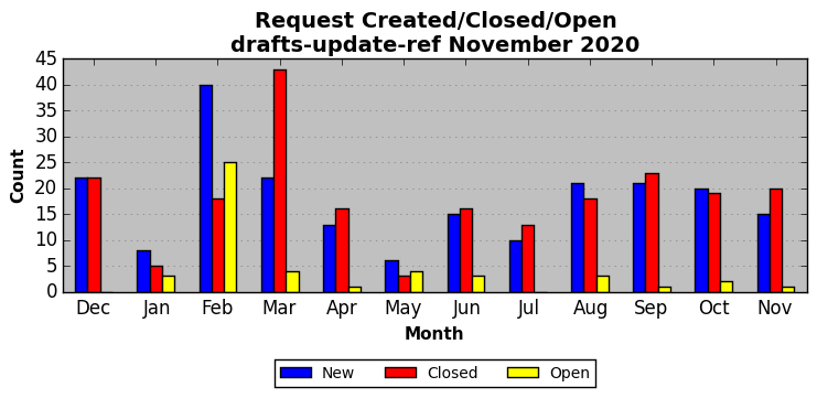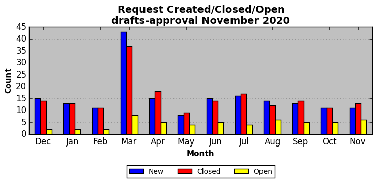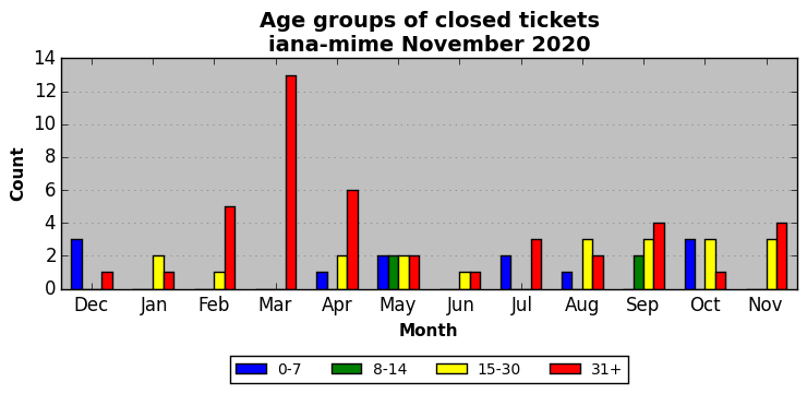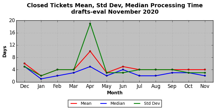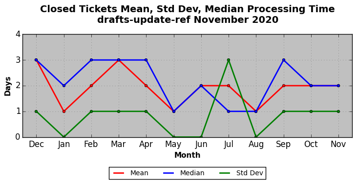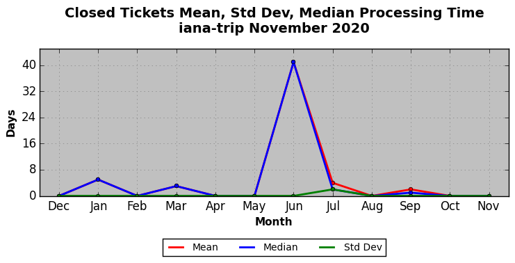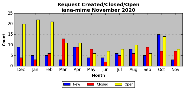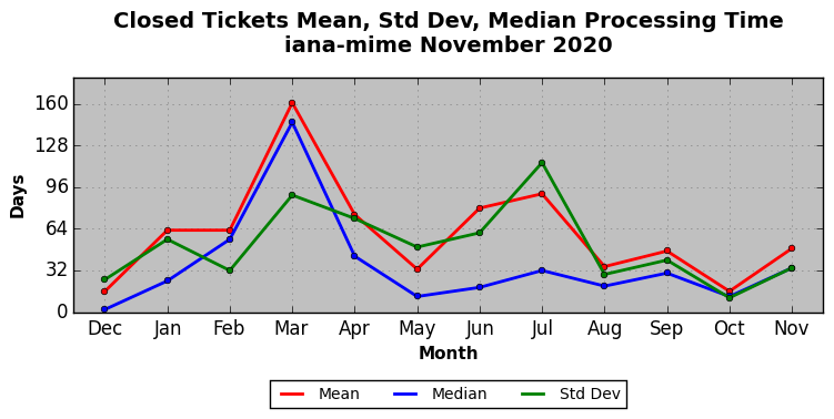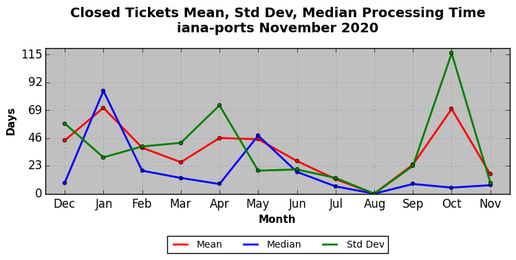 The statistics below are offered to measure IANA's fulfillment of the goals established in the ICANN / IANA - IETF MoU Supplemental Agreement. Further details on these goals and statistics can be found by reviewing the agreement.