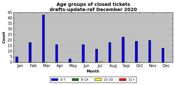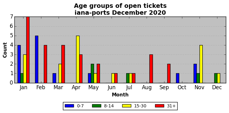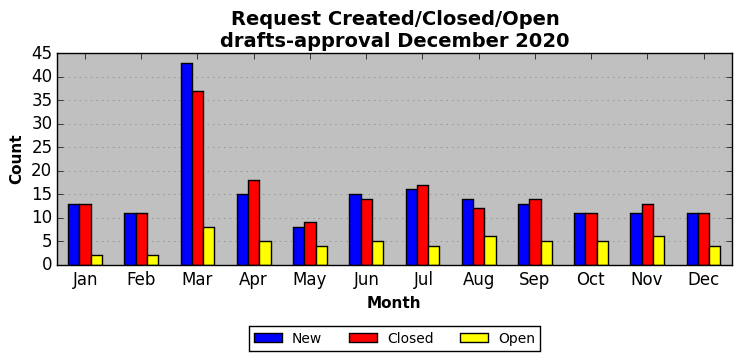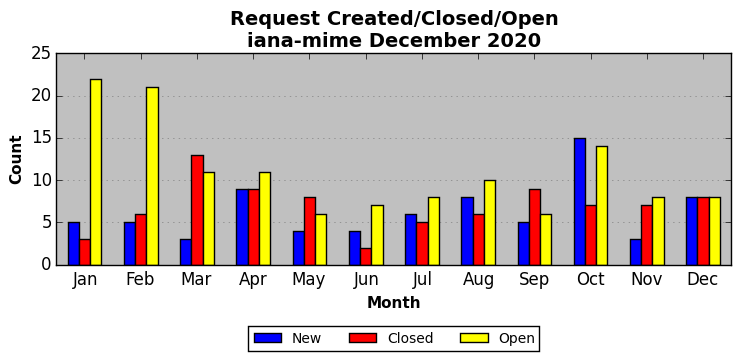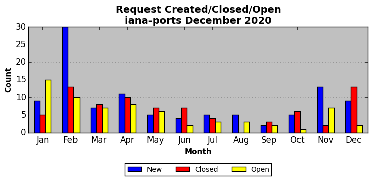 The statistics below are offered to measure IANA's fulfillment of the goals established in the ICANN / IANA - IETF MoU Supplemental Agreement. Further details on these goals and statistics can be found by reviewing the agreement.