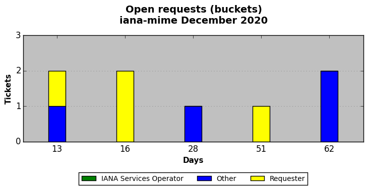 December 2020Due to the nature of resource request reviews, ICANN/IANA and the IETF community are jointly responsible for cooperatively managing the resource request process. ICANN/IANA has control over the functions it performs directly, e.g., receiving requests, making sure they are syntactically and semantically sensible, forwarding the requests to Designated Experts where appropriate, creating and modifying the registries, etc. The IETF community has direct or indirect control over functions performed by third parties, including IESG Designated Experts, the IESG, the IAB, the RFC Editor, and the requester. As such, the processing of requests has a “gross processing time” calendar days goal established for each function and a “net processing time” calendar days goal to reflect time expended directly by ICANN/IANA.