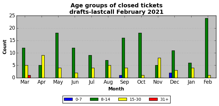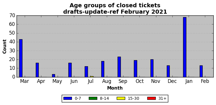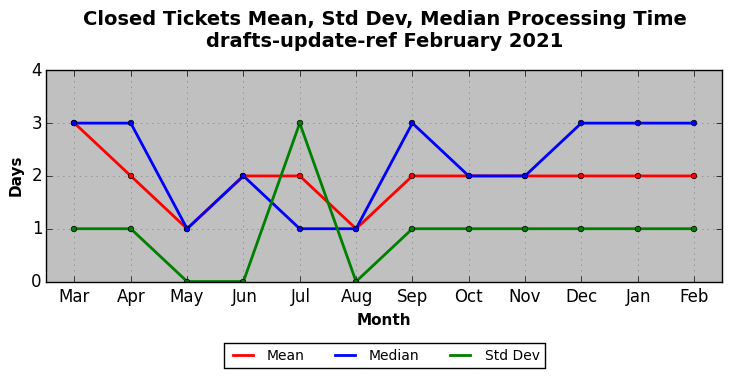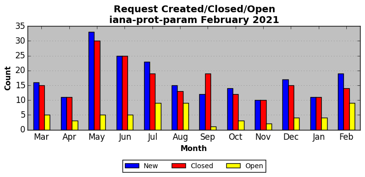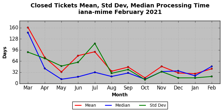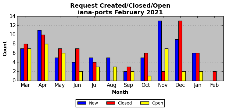 The statistics below are offered to measure IANA's fulfillment of the goals established in the ICANN / IANA - IETF MoU Supplemental Agreement. Further details on these goals and statistics can be found by reviewing the agreement.
