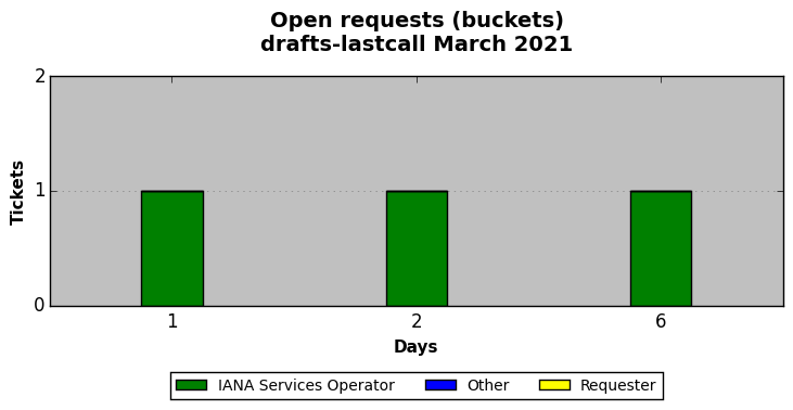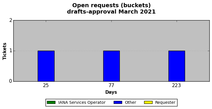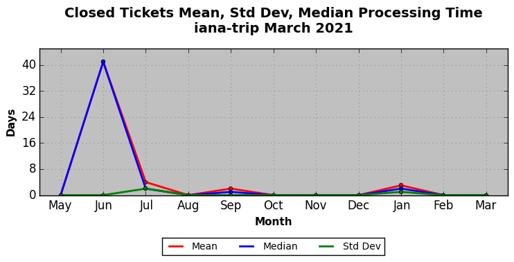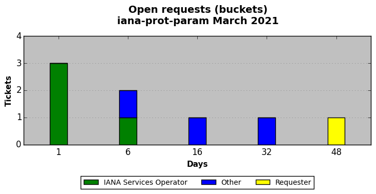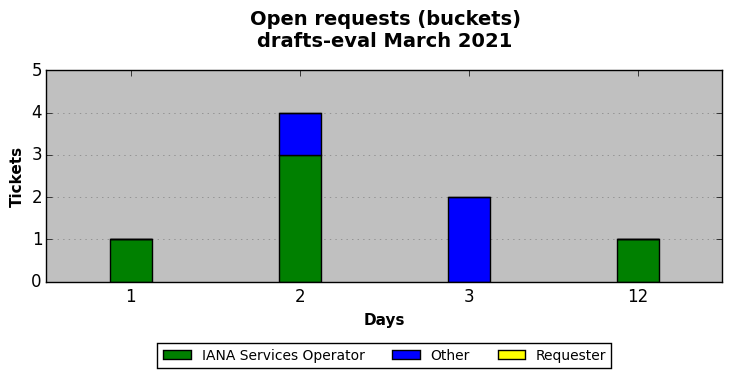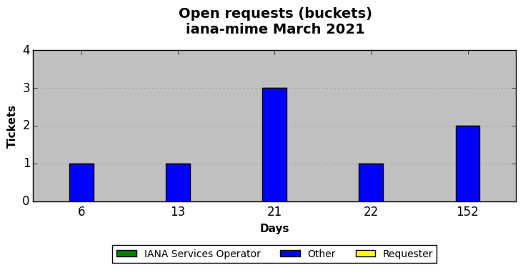 March 2021Due to the nature of resource request reviews, ICANN/IANA and the IETF community are jointly responsible for cooperatively managing the resource request process. ICANN/IANA has control over the functions it performs directly, e.g., receiving requests, making sure they are syntactically and semantically sensible, forwarding the requests to Designated Experts where appropriate, creating and modifying the registries, etc. The IETF community has direct or indirect control over functions performed by third parties, including IESG Designated Experts, the IESG, the IAB, the RFC Editor, and the requester. As such, the processing of requests has a “gross processing time” calendar days goal established for each function and a “net processing time” calendar days goal to reflect time expended directly by ICANN/IANA.