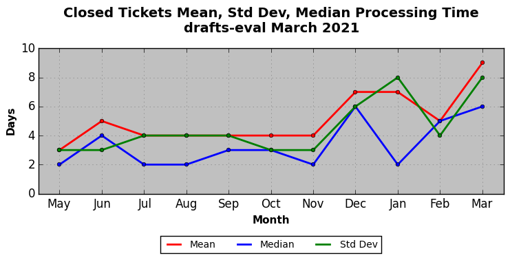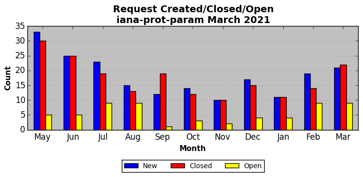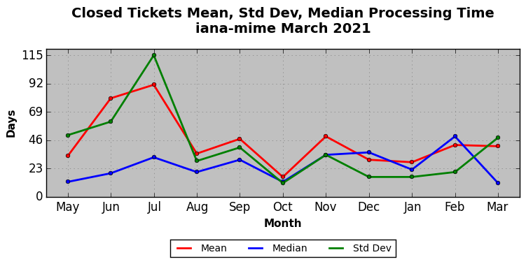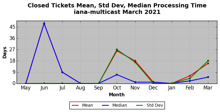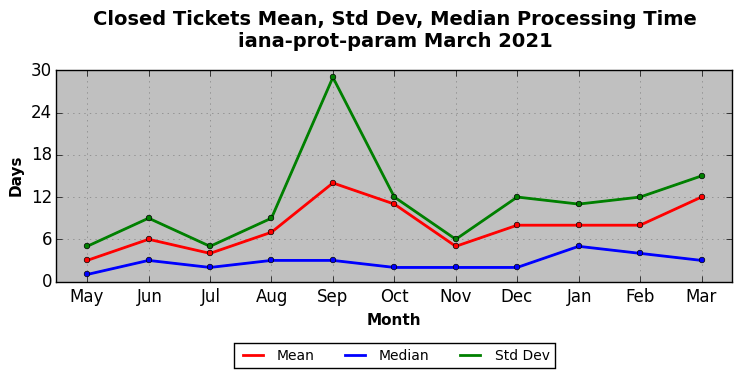The statistics below are offered to measure IANA's fulfillment of the goals established in the ICANN / IANA - IETF MoU Supplemental Agreement. Further details on these goals and statistics can be found by reviewing the agreement.