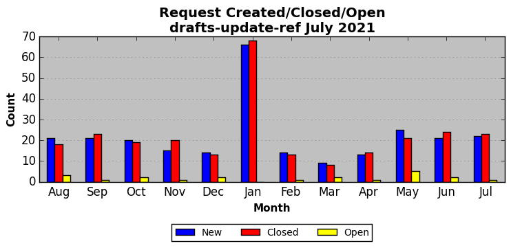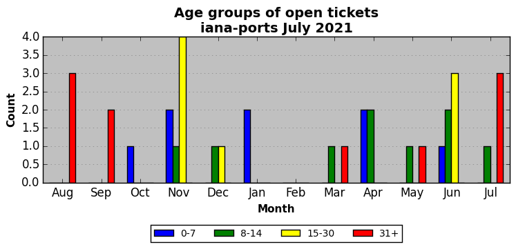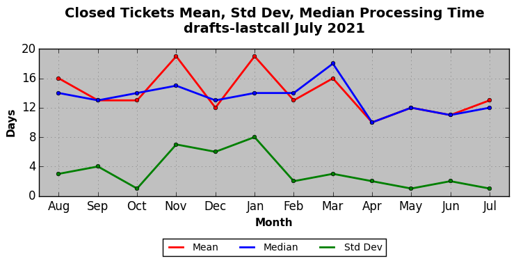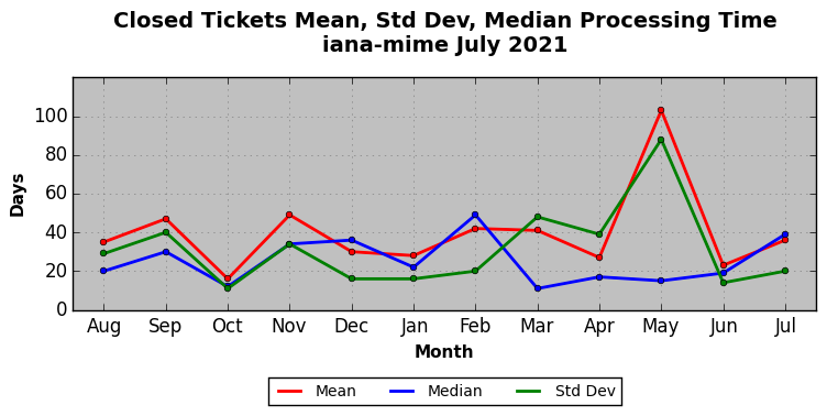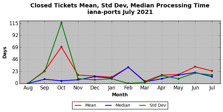 The statistics below are offered to measure IANA's fulfillment of the goals established in the ICANN / IANA - IETF MoU Supplemental Agreement. Further details on these goals and statistics can be found by reviewing the agreement.