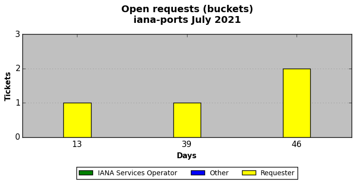 July 2021Due to the nature of resource request reviews, ICANN/IANA and the IETF community are jointly responsible for cooperatively managing the resource request process. ICANN/IANA has control over the functions it performs directly, e.g., receiving requests, making sure they are syntactically and semantically sensible, forwarding the requests to Designated Experts where appropriate, creating and modifying the registries, etc. The IETF community has direct or indirect control over functions performed by third parties, including IESG Designated Experts, the IESG, the IAB, the RFC Editor, and the requester. As such, the processing of requests has a “gross processing time” calendar days goal established for each function and a “net processing time” calendar days goal to reflect time expended directly by ICANN/IANA.