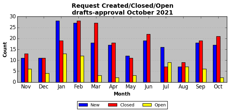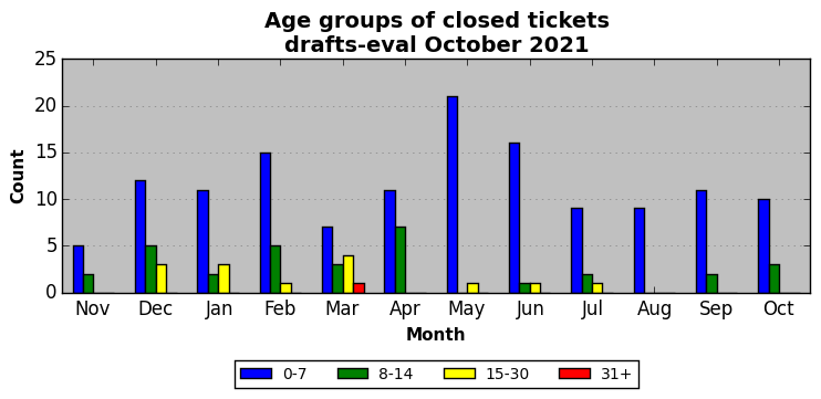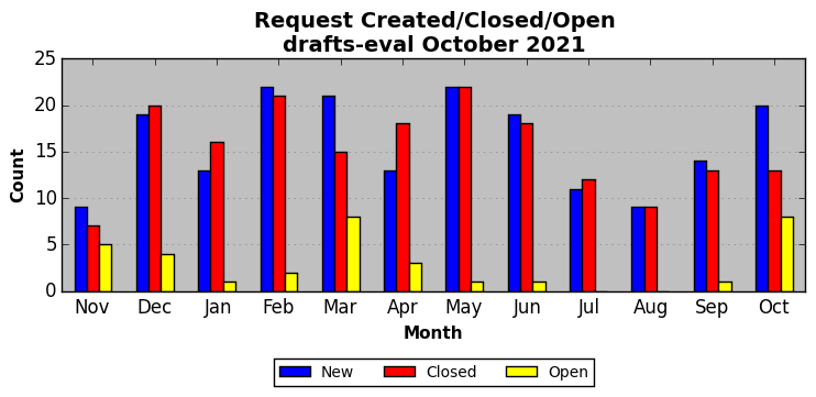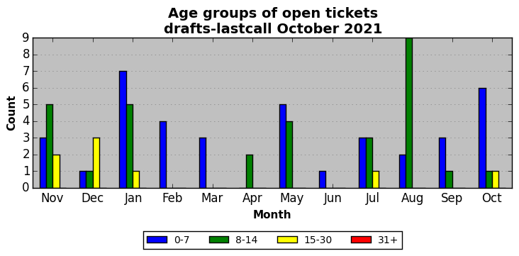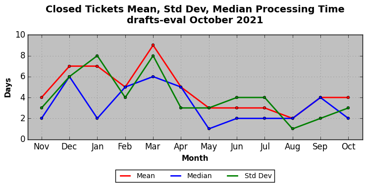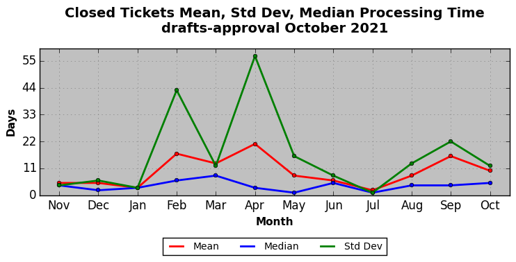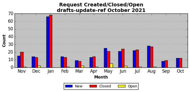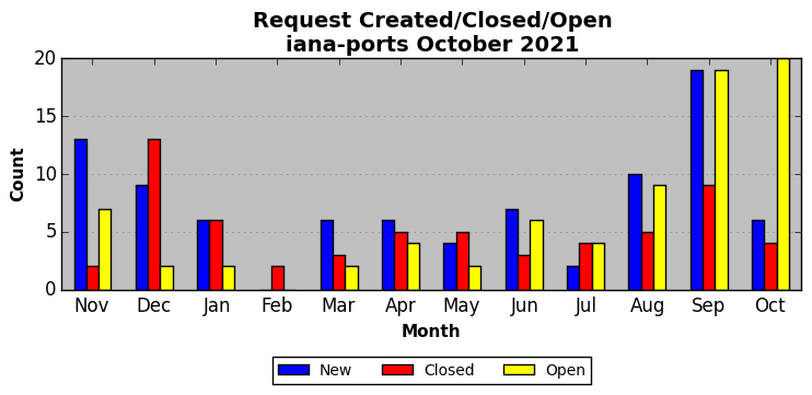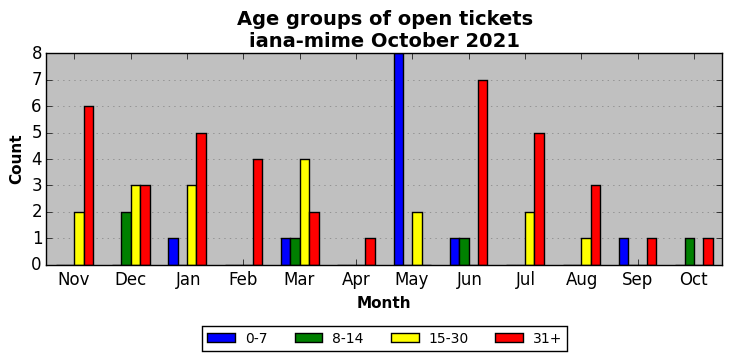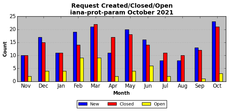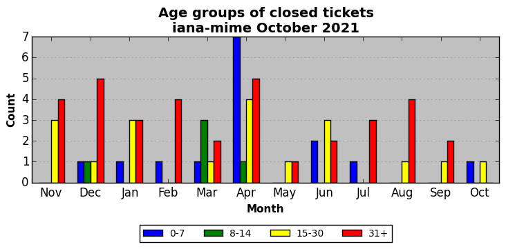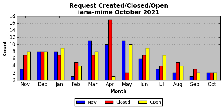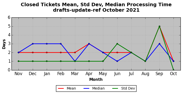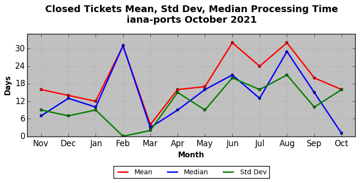 The statistics below are offered to measure IANA's fulfillment of the goals established in the ICANN / IANA - IETF MoU Supplemental Agreement. Further details on these goals and statistics can be found by reviewing the agreement.