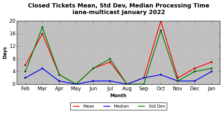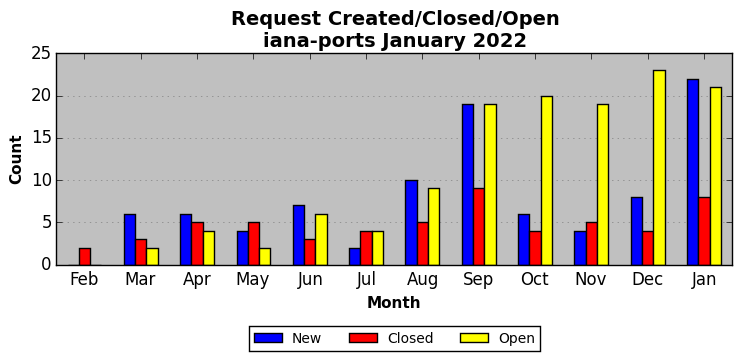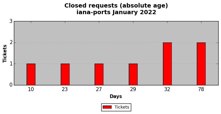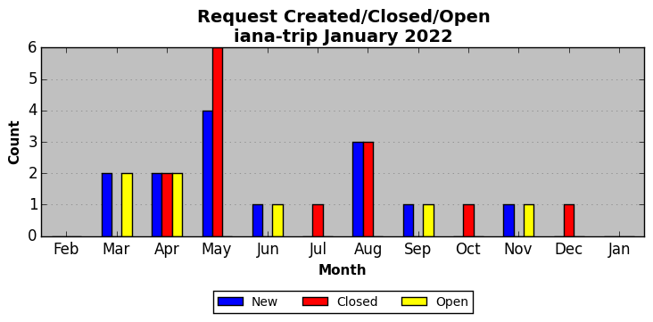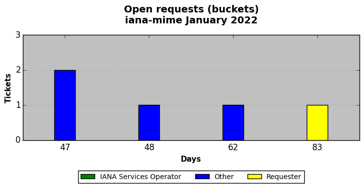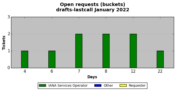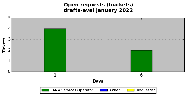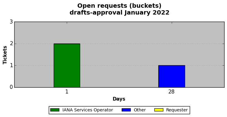 January 2022Due to the nature of resource request reviews, ICANN/IANA and the IETF community are jointly responsible for cooperatively managing the resource request process. ICANN/IANA has control over the functions it performs directly, e.g., receiving requests, making sure they are syntactically and semantically sensible, forwarding the requests to Designated Experts where appropriate, creating and modifying the registries, etc. The IETF community has direct or indirect control over functions performed by third parties, including IESG Designated Experts, the IESG, the IAB, the RFC Editor, and the requester. As such, the processing of requests has a “gross processing time” calendar days goal established for each function and a “net processing time” calendar days goal to reflect time expended directly by ICANN/IANA.