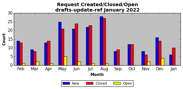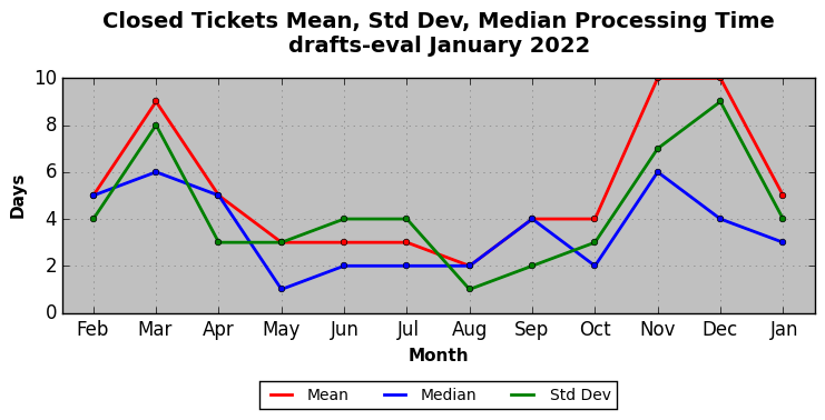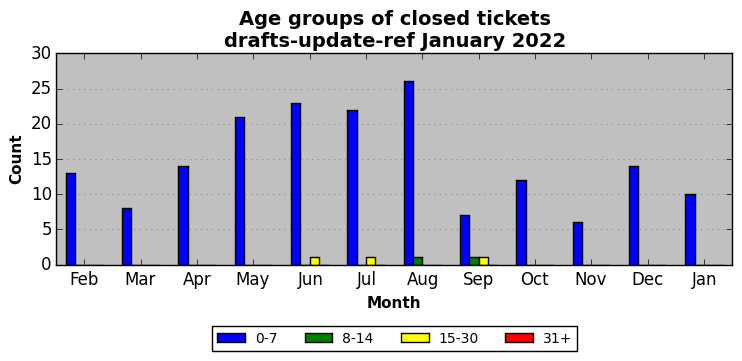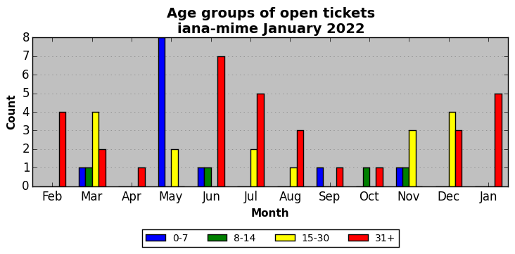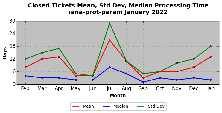 The statistics below are offered to measure IANA's fulfillment of the goals established in the ICANN / IANA - IETF MoU Supplemental Agreement. Further details on these goals and statistics can be found by reviewing the agreement.
