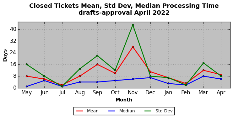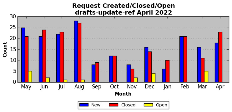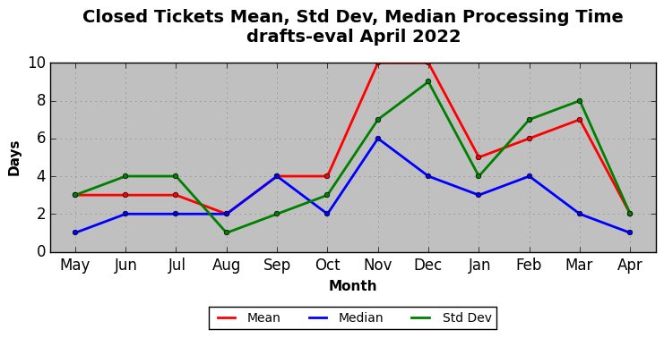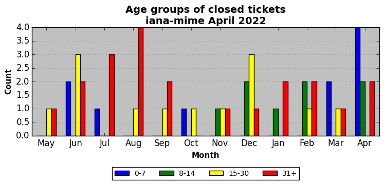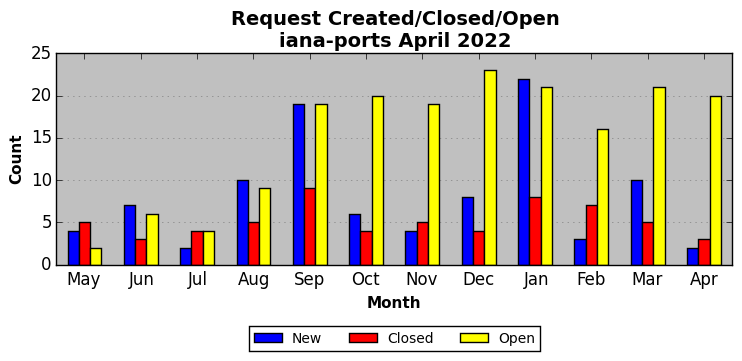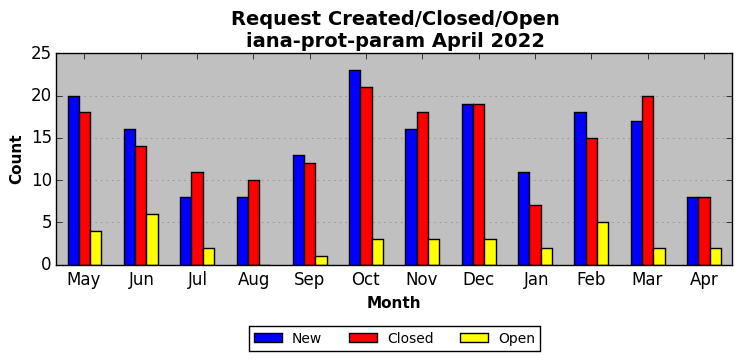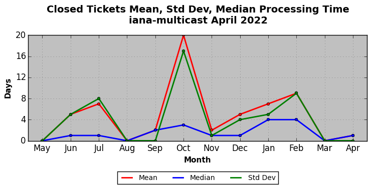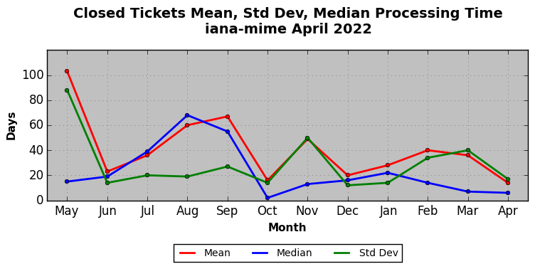 The statistics below are offered to measure IANA's fulfillment of the goals established in the ICANN / IANA - IETF MoU Supplemental Agreement. Further details on these goals and statistics can be found by reviewing the agreement.