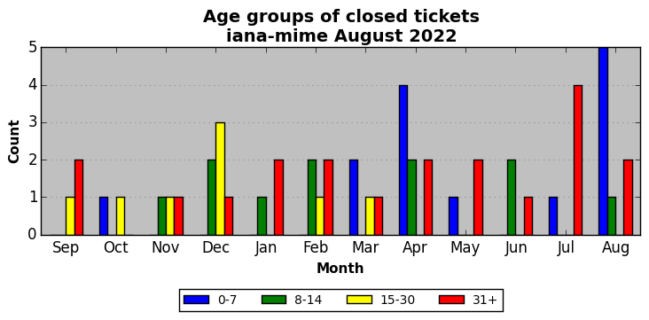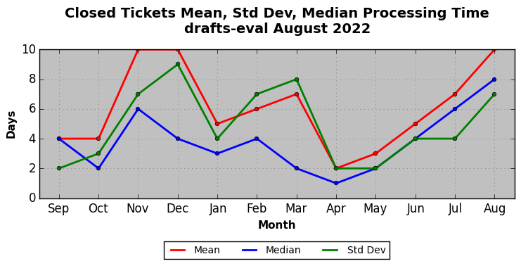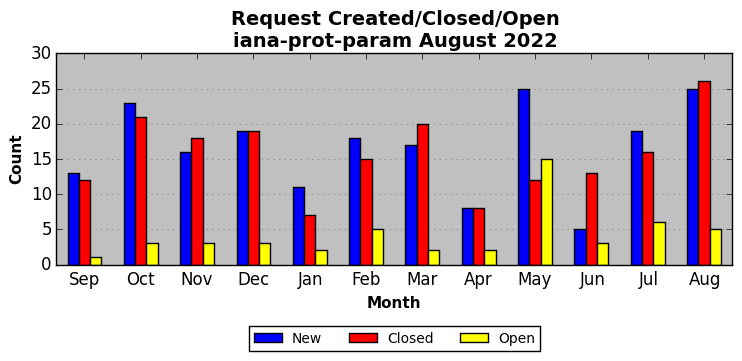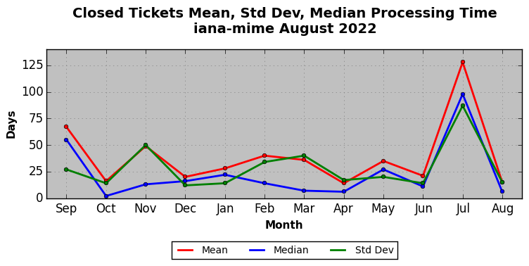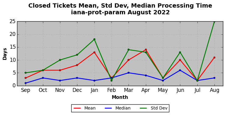The statistics below are offered to measure IANA's fulfillment of the goals established in the ICANN / IANA - IETF MoU Supplemental Agreement. Further details on these goals and statistics can be found by reviewing the agreement.