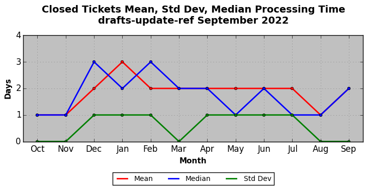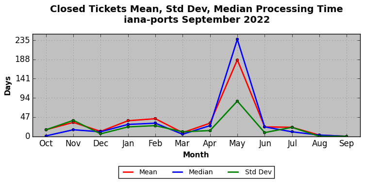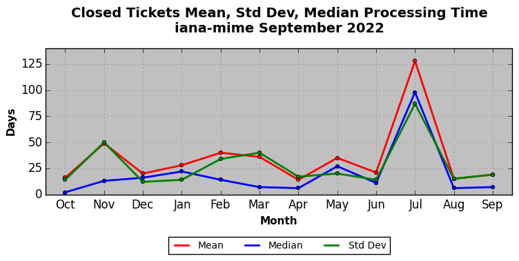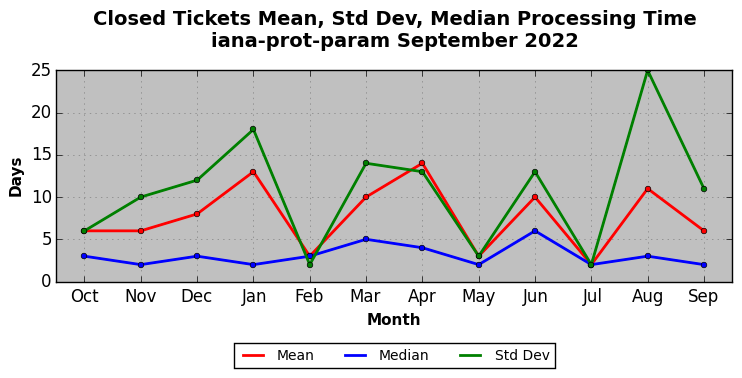 The statistics below are offered to measure IANA's fulfillment of the goals established in the ICANN / IANA - IETF MoU Supplemental Agreement. Further details on these goals and statistics can be found by reviewing the agreement.