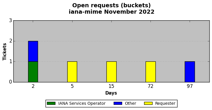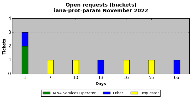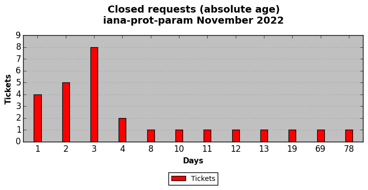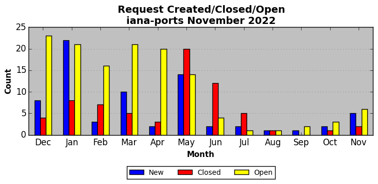 November 2022Due to the nature of resource request reviews, ICANN/IANA and the IETF community are jointly responsible for cooperatively managing the resource request process. ICANN/IANA has control over the functions it performs directly, e.g., receiving requests, making sure they are syntactically and semantically sensible, forwarding the requests to Designated Experts where appropriate, creating and modifying the registries, etc. The IETF community has direct or indirect control over functions performed by third parties, including IESG Designated Experts, the IESG, the IAB, the RFC Editor, and the requester. As such, the processing of requests has a “gross processing time” calendar days goal established for each function and a “net processing time” calendar days goal to reflect time expended directly by ICANN/IANA.