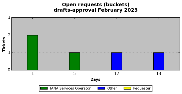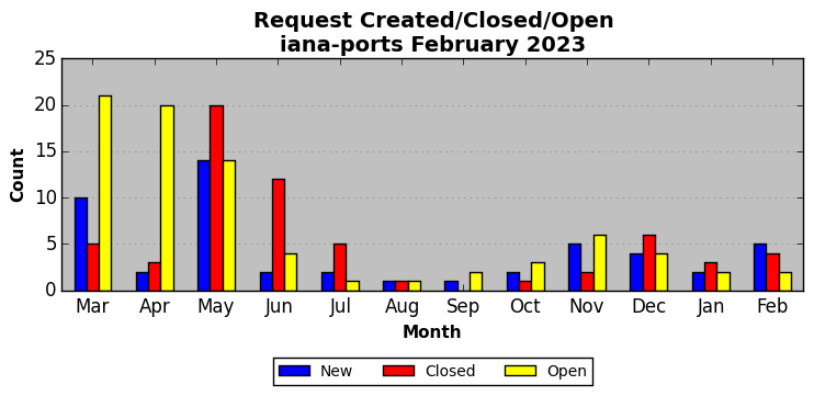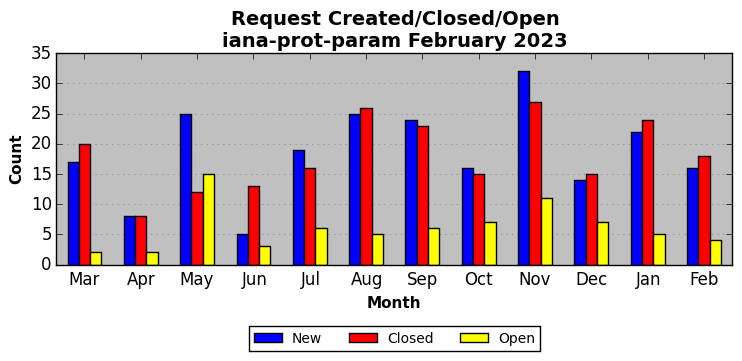 February 2023Due to the nature of resource request reviews, ICANN/IANA and the IETF community are jointly responsible for cooperatively managing the resource request process. ICANN/IANA has control over the functions it performs directly, e.g., receiving requests, making sure they are syntactically and semantically sensible, forwarding the requests to Designated Experts where appropriate, creating and modifying the registries, etc. The IETF community has direct or indirect control over functions performed by third parties, including IESG Designated Experts, the IESG, the IAB, the RFC Editor, and the requester. As such, the processing of requests has a “gross processing time” calendar days goal established for each function and a “net processing time” calendar days goal to reflect time expended directly by ICANN/IANA.