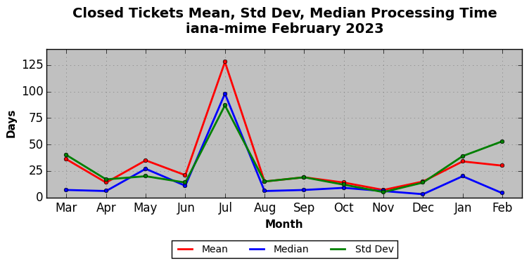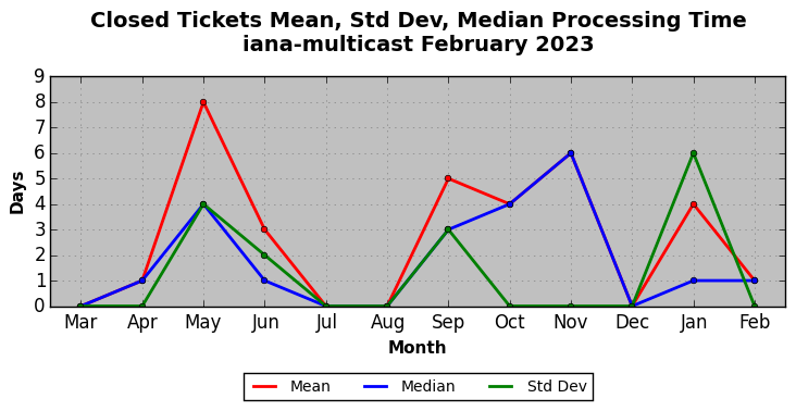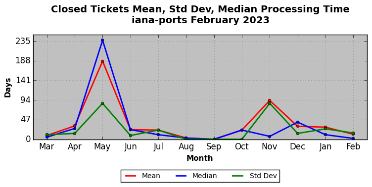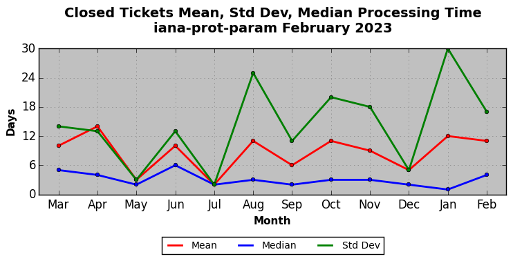The statistics below are offered to measure IANA's fulfillment of the goals established in the ICANN / IANA - IETF MoU Supplemental Agreement. Further details on these goals and statistics can be found by reviewing the agreement.