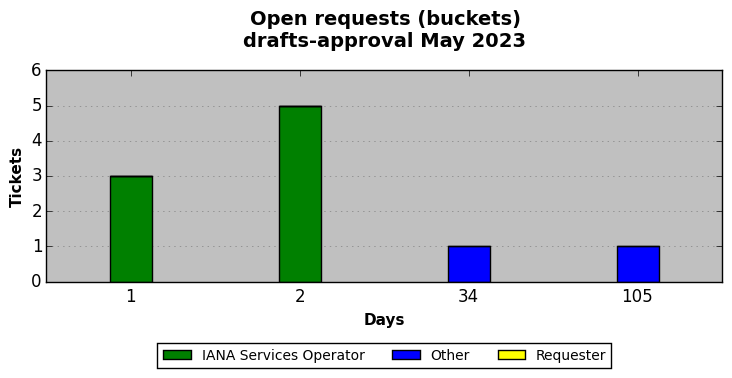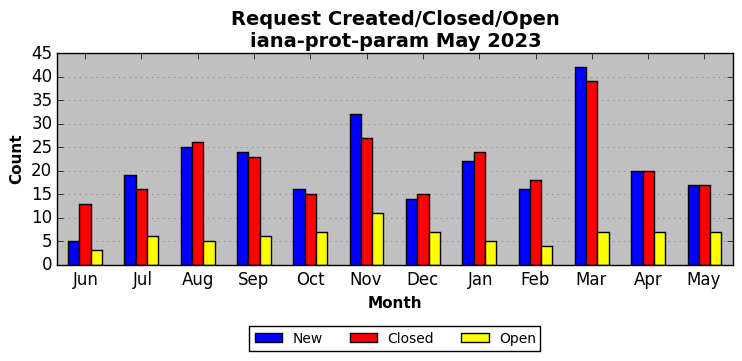 May 2023Due to the nature of resource request reviews, ICANN/IANA and the IETF community are jointly responsible for cooperatively managing the resource request process. ICANN/IANA has control over the functions it performs directly, e.g., receiving requests, making sure they are syntactically and semantically sensible, forwarding the requests to Designated Experts where appropriate, creating and modifying the registries, etc. The IETF community has direct or indirect control over functions performed by third parties, including IESG Designated Experts, the IESG, the IAB, the RFC Editor, and the requester. As such, the processing of requests has a “gross processing time” calendar days goal established for each function and a “net processing time” calendar days goal to reflect time expended directly by ICANN/IANA.
